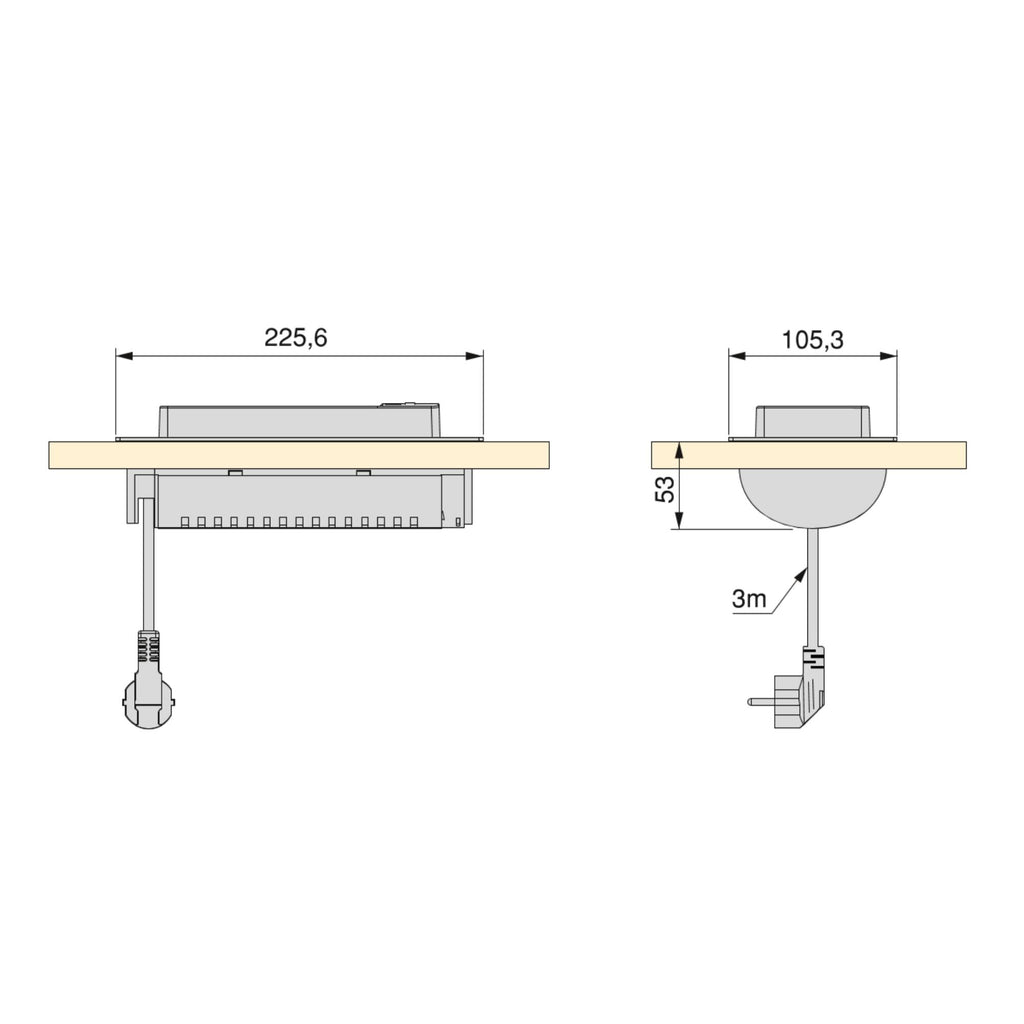 La sua installazione è molto versatile, richiede solo una lavorazione di 88x215 mm, per spessori tra 10 e 40 mm e si fissa al mobile montando le piastre di montaggio. Può essere installato ovunque, anche sopra i cassetti, perché richiede solo una profondità di 53 mm.