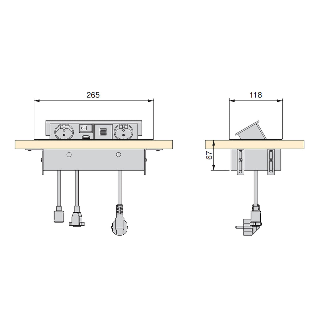 Secondo il modello scelto, ha una o due spine di tipo F Schuko (EU) o tipo G (UK) con una potenza massima fino a 3.000W - 13A, due connettori USB per la ricarica di dispositivi elettronici da 5V DC (1 x 2 A / 2 x 1,5 A), una porta di rete RJ45 e un connettore HDMI2.0. Include un coperchio che permette accedere facilmente ai connettori ed un discreto indicatore LED di alimentazione.