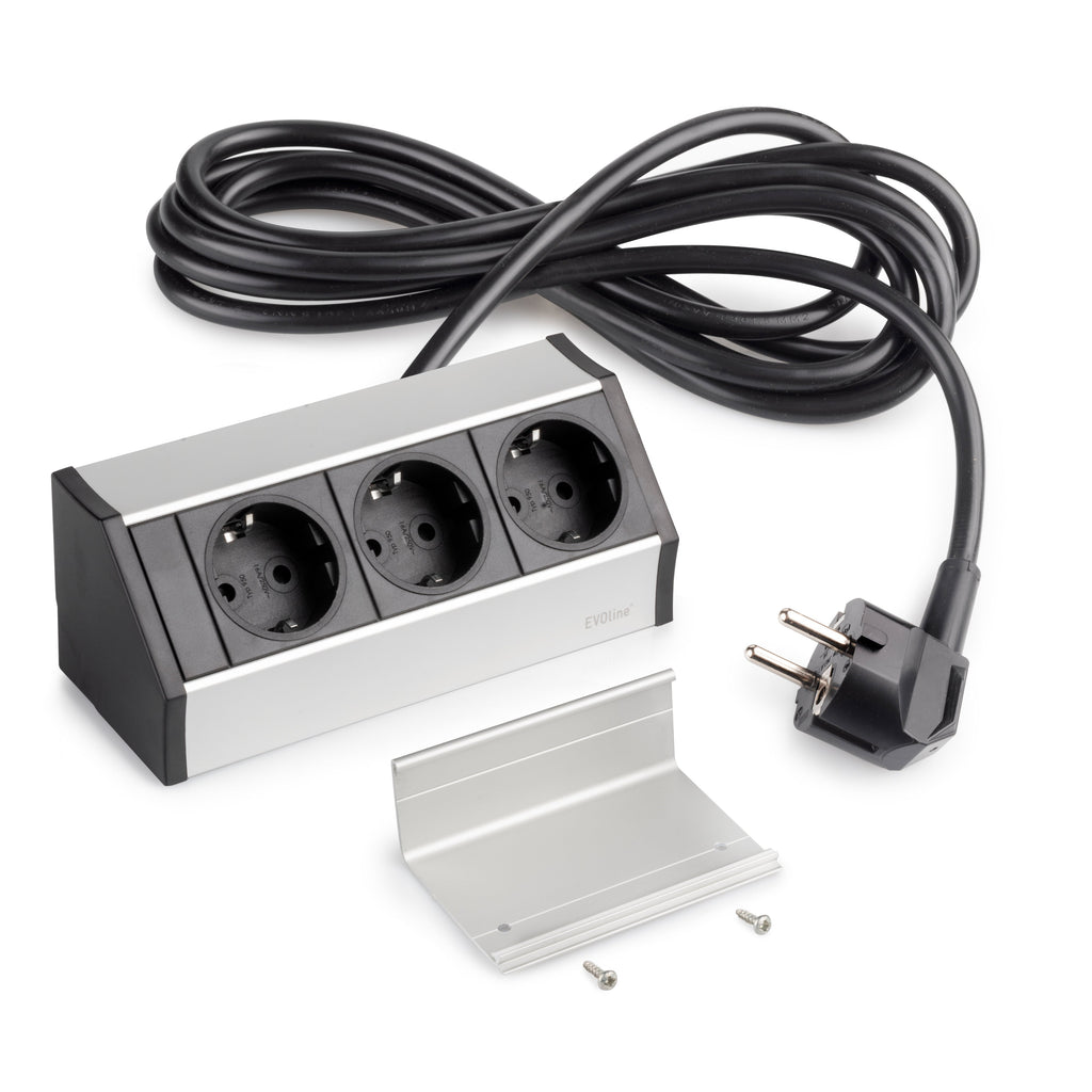 Presa elettrica multipla progettata per avere sempre delle prese accessibili nei mobili della cucina, in ufficio e di casa. Grazie al suo design a 45º, può essere avvitato orizzontalmente o verticalmente, integrandosi completamente nel mobile.