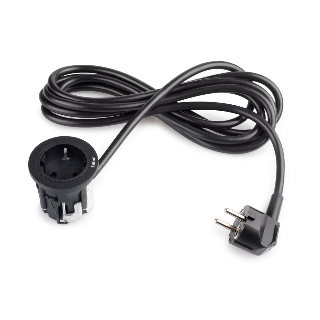 Questa multipresa è dotata della sicurezza bambini integrata, una presa di tipo F Schuko (EU) con una potenza massima ammissibile fino a 3600W-16A e un cavo di collegamento con spina angolare di 3 m con presa 230V AC 50Hz. La sua installazione è molto versatile, poiché richiede solo un foro di Ø54mm.
