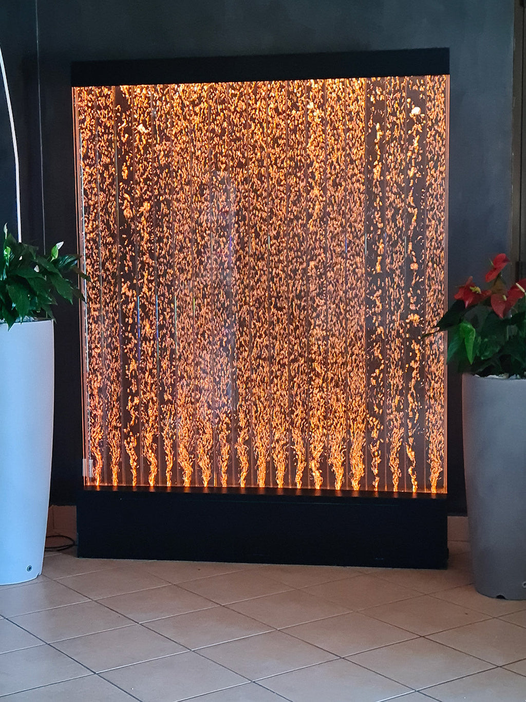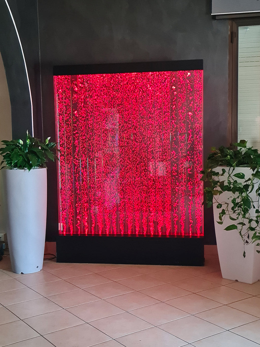 Muro d’Acqua con Bolle Verticali 150x200 cm in Plexiglas con LED Perlage Corallo Grande