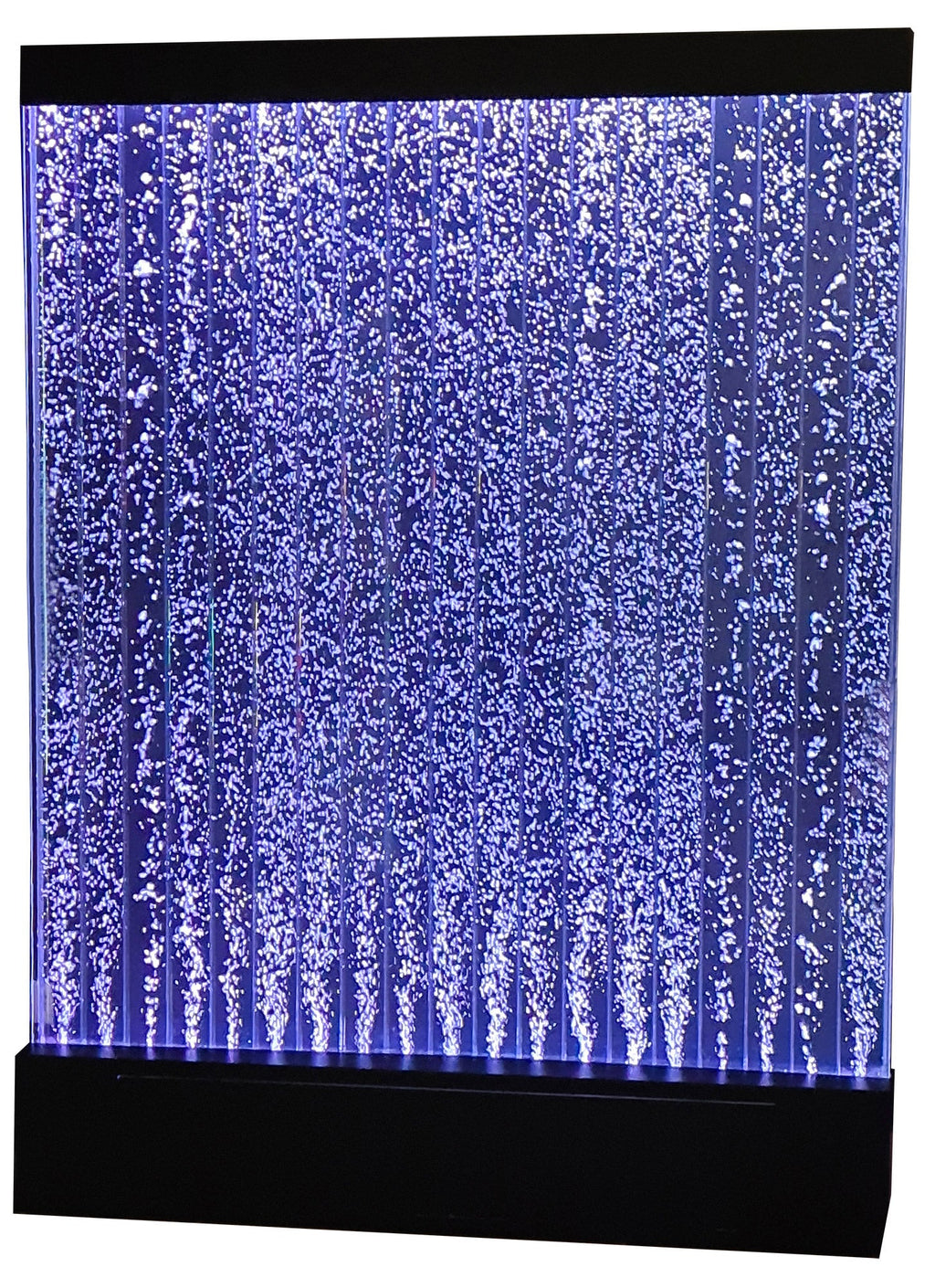 Il pannello è costruito in plexiglass trasparente nel quale scorrono una moltitudine di bolle dal basso verso l'alto creando un effetto suggestivo e ipnotico.