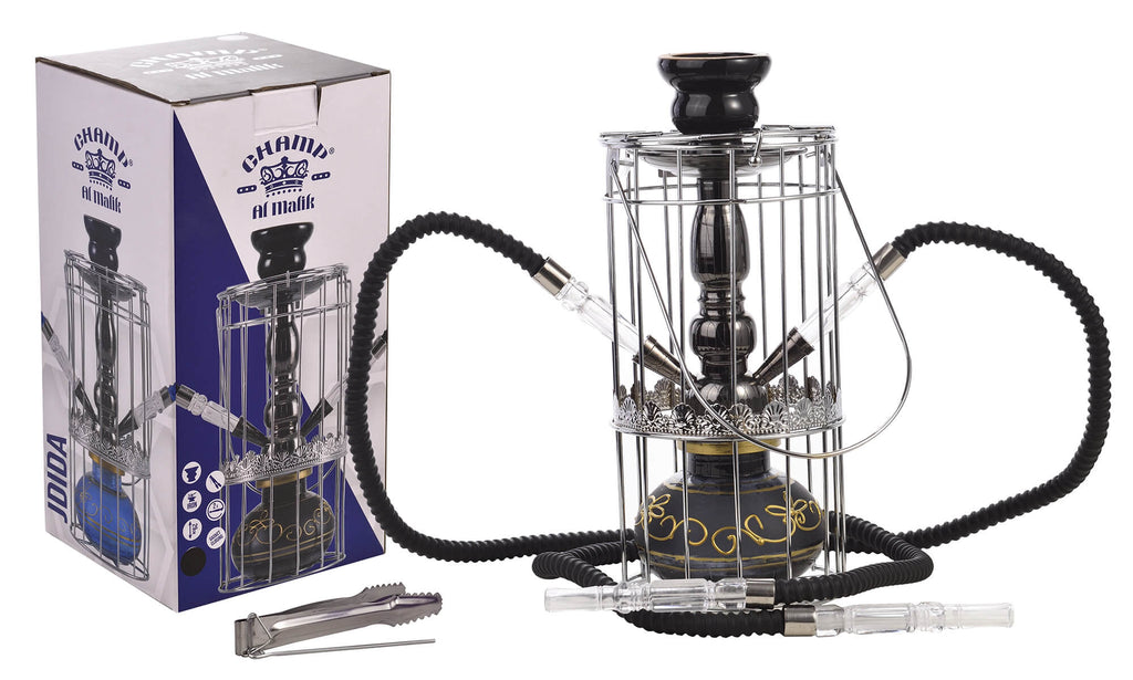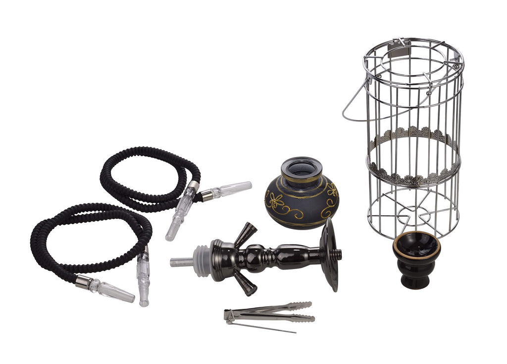Narghilè 2 Tubi H29 cm con Pinza Carbone