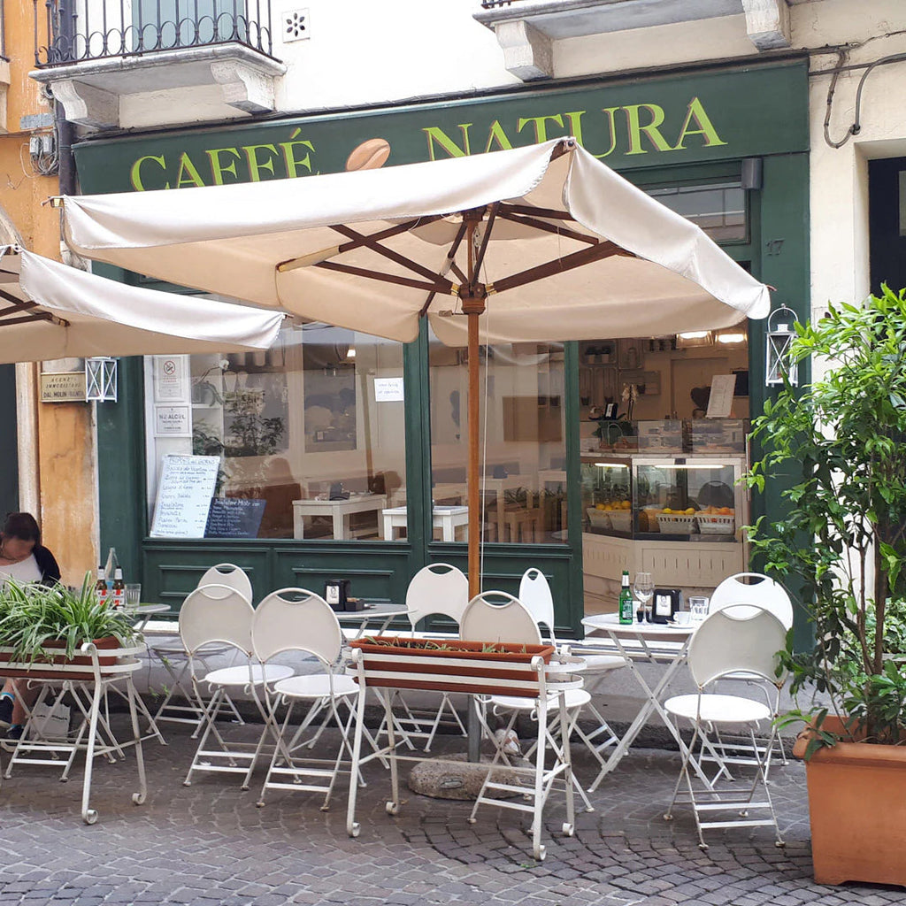 Gli ombrelloni a palo centrale in legno sono ideali sia per bar che per giardini privati.
