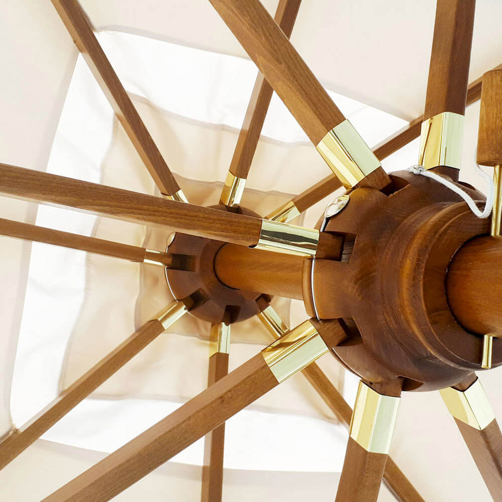 Gli ombrelloni in legno Danieli si distinguono per la qualità della lavorazione artigianale e dei materiali scelti. I nostri tessuti composti al 100% da fibra acrilica garantiscono solidità alla luce e permeabilità all'aria. Trama da 14 fili/cm ca. per un peso di 300 g/mq. Trattati con resine fluorcarboniche che garantiscono: la protezione antimacchia, l'idrorepellenza, la traspirabilità.