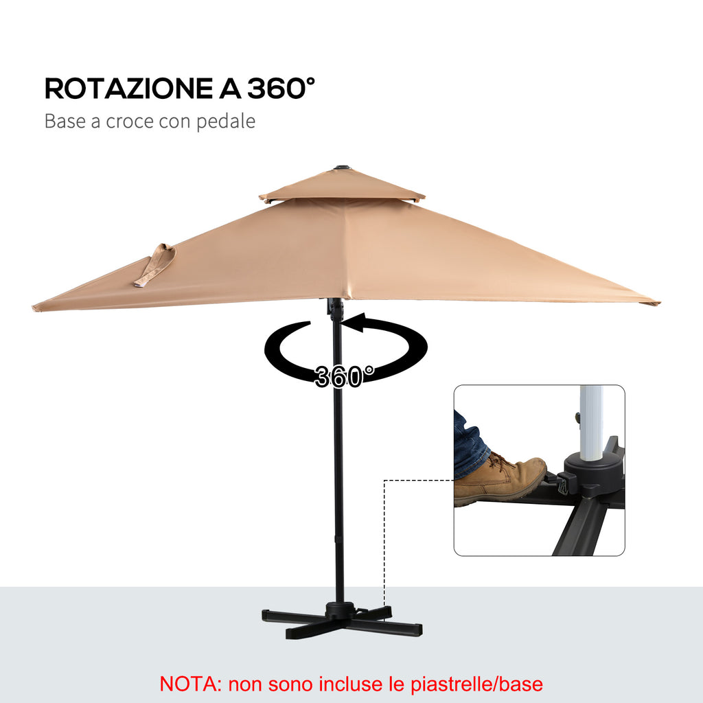 - DESIGN A 2 LIVELLI: La copertura quadrata dell'ombrellone da giardino offre un ampio spazio d'ombra per ripararsi dal sole. Il design superiore a 2 livelli permette il passaggio del vento, per assicurare stabilità e ricambio d'aria