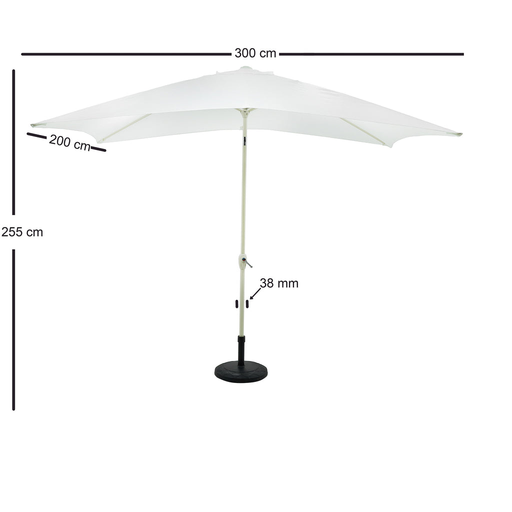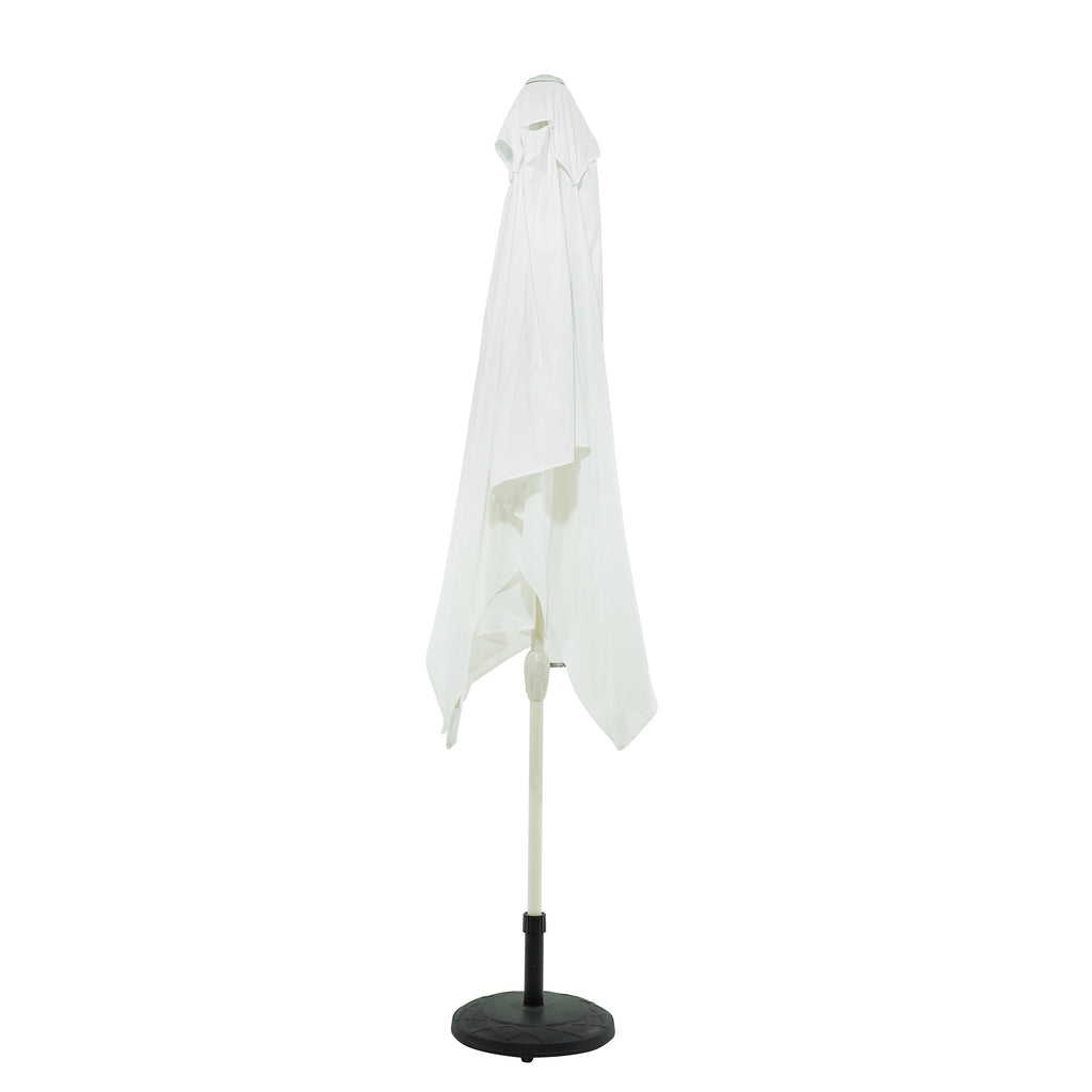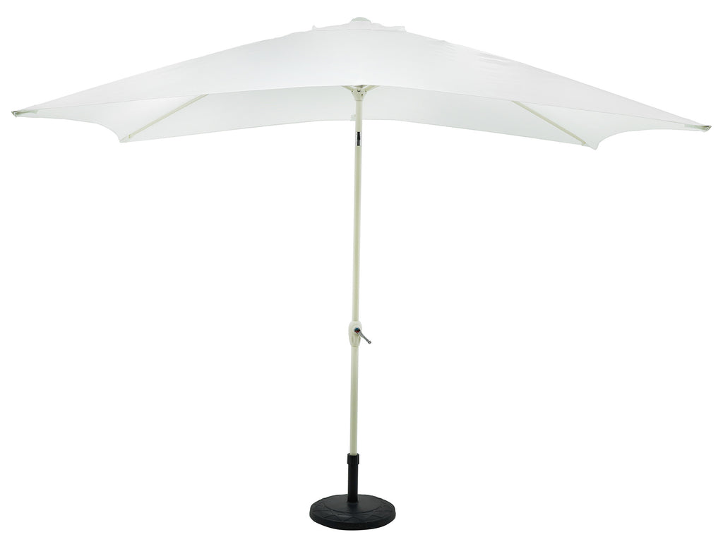 Quest'ombrellone è un ottima soluzione sia per giardini che per terrazzi, offre un ottima protezione dai raggi UV in estate ed anche in caso di pioggia fornisce un valido riparo grazie al tessuto impermeabile. Realizzato con una solida struttura in alluminio bianco è la soluzione ideale per completare il vostro arredo outdoor, creando zone d'ombra dove rilassarvi grazie anche alla comoda inclinazione. L'apertura e la chiusura dell'ombrellone avvengono mediante una manovella in modo semplice e senza troppa fatica. Dal design essenziale ma capace di dare quel tocco in più al vostro giardino o terrazzo.