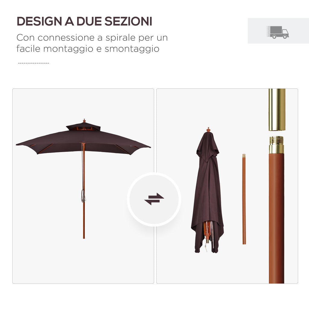 Ombrellone da Giardino 3x3 m Palo Ø48 mm 8 Stecche in Legno Marrone