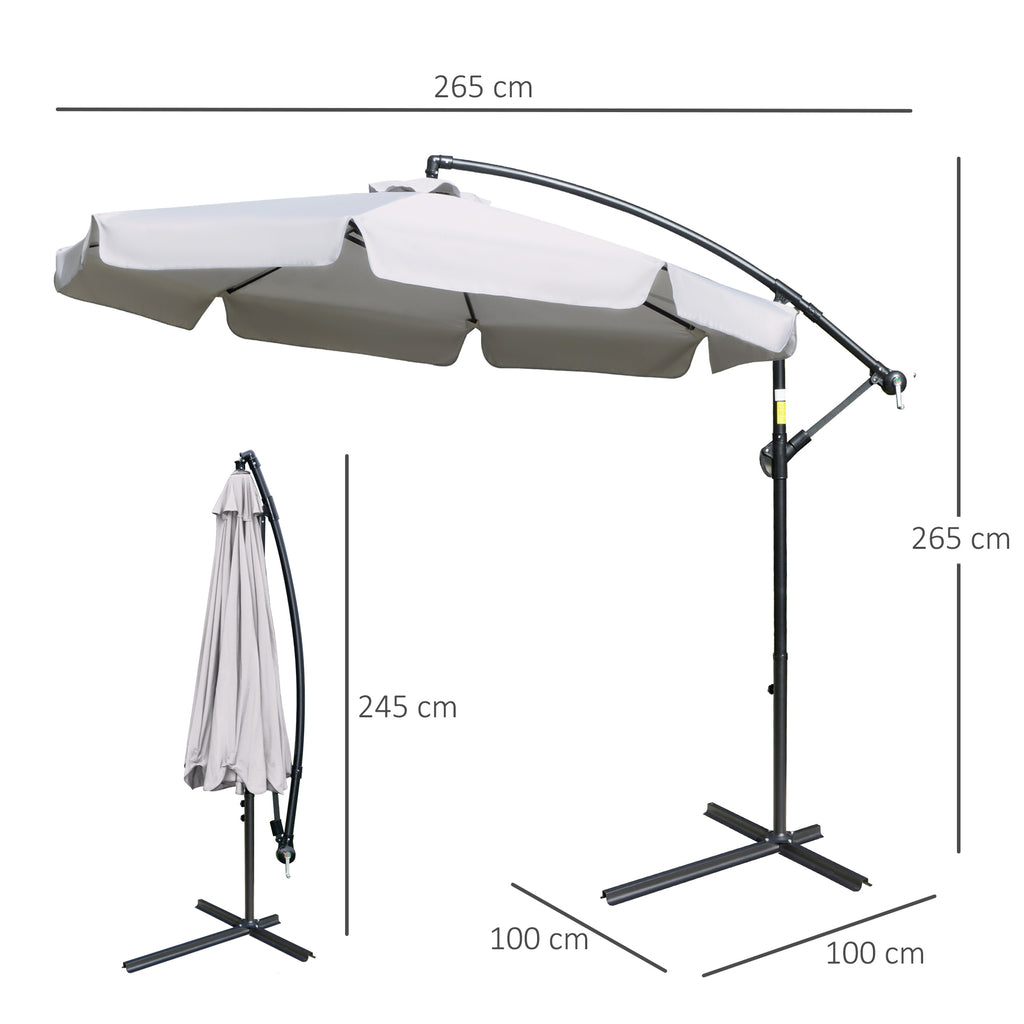 Ombrellone da Giardino a Braccio Ø265x265H cm con Apertura a Manovella Grigio