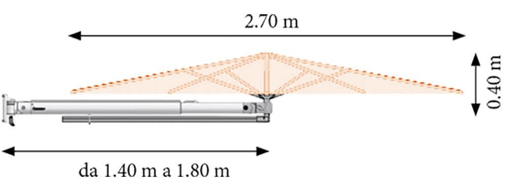 Caratteristiche Tecniche Ombrellone da Giardino a Parete Ø2,70m con Braccio Telescopico Maffei Parrot P3