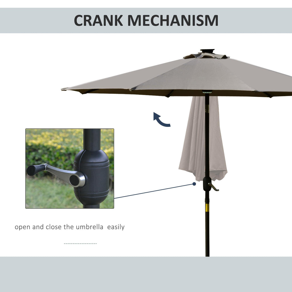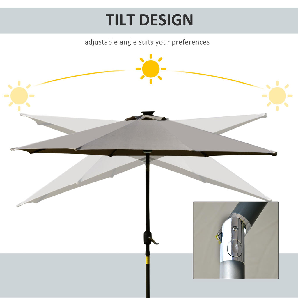 Ombrellone da Giardino con Luci LED a Pannello Solare Ø2,66m in Metallo e Poliestere Grigio