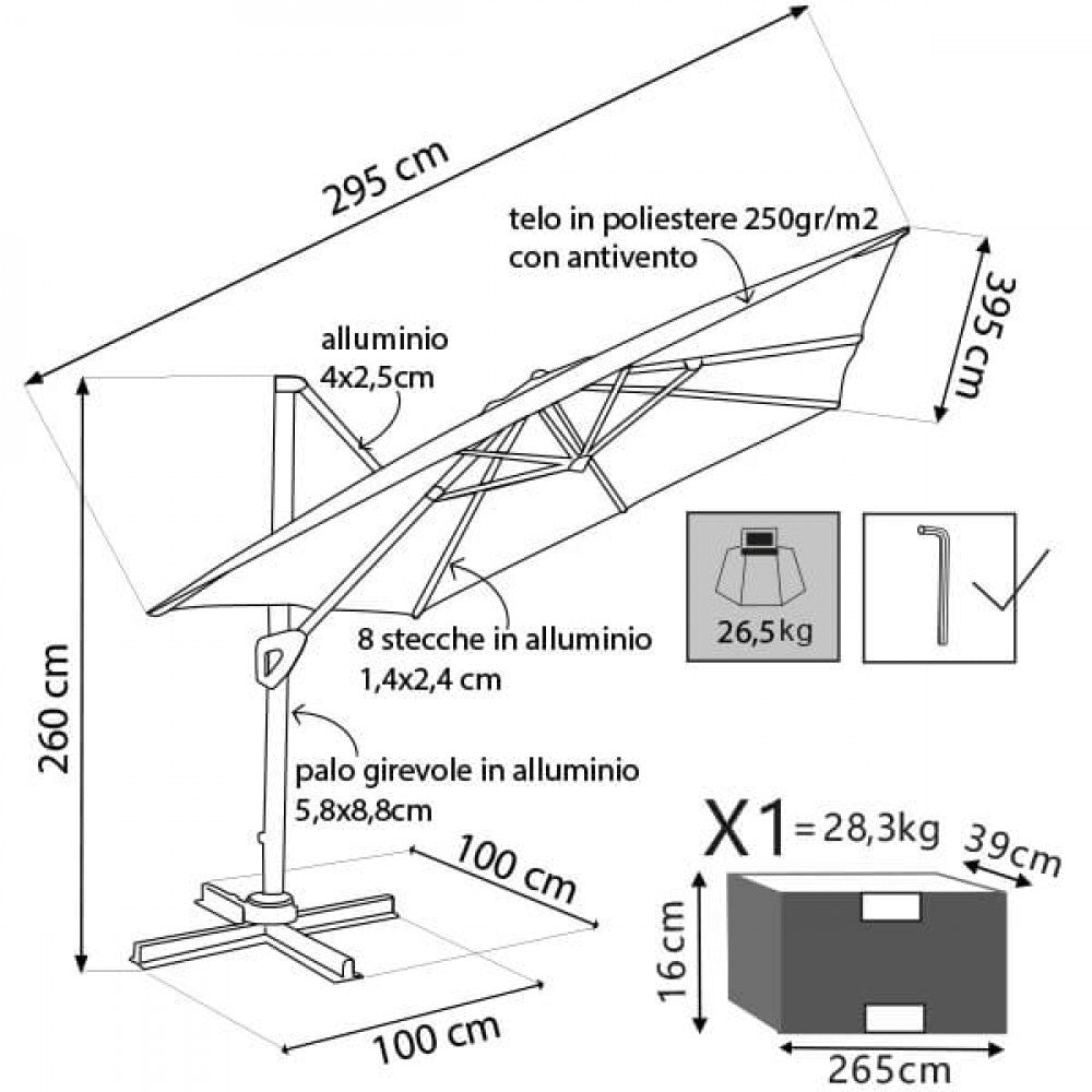 Ombrellone da Giardino Darwin Grigio Decentrato 3x4 m in Alluminio Telo Grigio