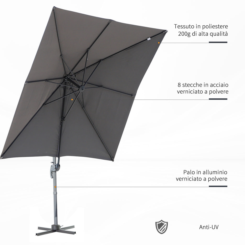 Ombrellone da Giardino Decentrato 2,5x2,5m in Alluminio Grigio