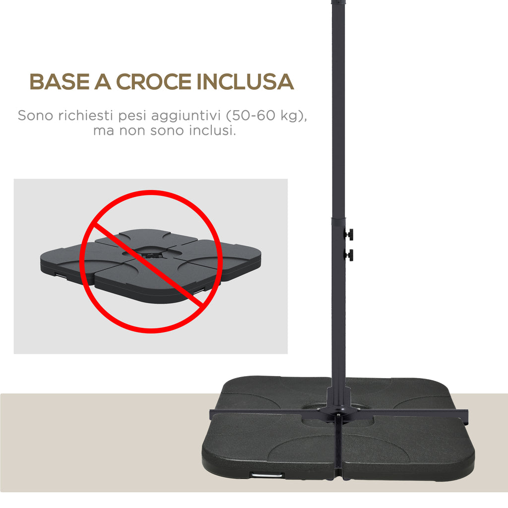 Per non rinunciare a stare all'aperto nelle giornate di sole scegli il nostro ombrellone da giardino. Il design di questo ombrellone decentrato assicura un maggiore spazio sotto al tendone, per posizionare comodamente tavoli o salotti da giardino. La manovella sul palo facilita l'apertura e la chiusura, e la struttura in acciaio e poliestere garantiscono una resistenza ottimale all'uso negli spazi esterni. Design decentrato che offre più spazio sotto al parasole. Apri e chiudi l'ombrellone da giardino facilmente con la manovella. Realizzato per l'uso all'aperto, con tessuto poliestere e acciaio rivestito a polvere per una maggiore resistenza e stabilità. Ideale da usare come ombrellone per terrazza, giardino, cortile, ecc.. Base a croce inclusa, sono necessari pesi (non inclusi). Montaggio richiesto.