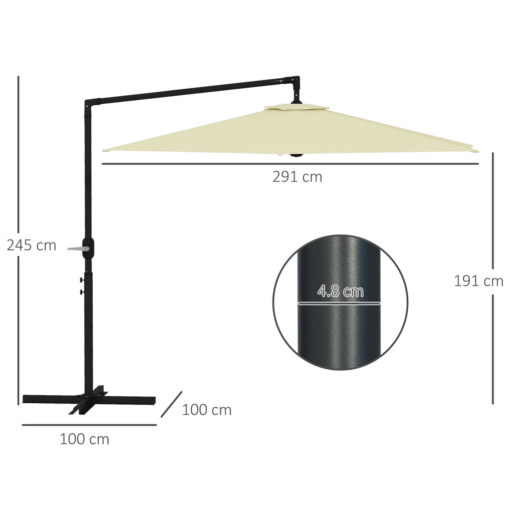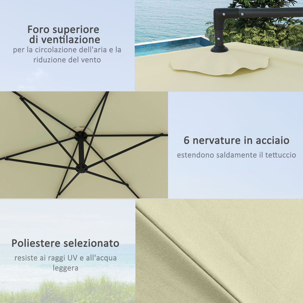Ombrellone da Giardino Decentrato 3x2.5 m con Base a Croce e Apertura a Manovella Beige