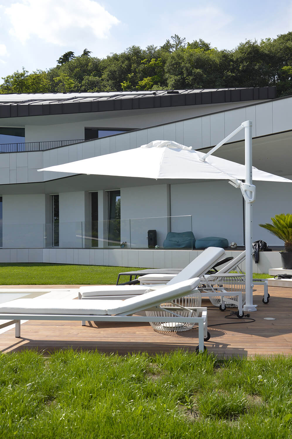 - Pratico meccanismo di gestione del parasole a tre movimenti: inclinabile lungo l'asse verticale inclinabile lungo l'asse orizzontale (movimento onda) orientabile a 360°