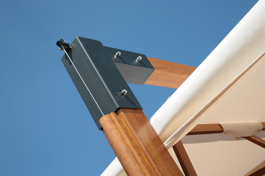 - Ombrellone San Francisco a palo laterale in legno con telo quadrato 3x3 metri con Pendente
