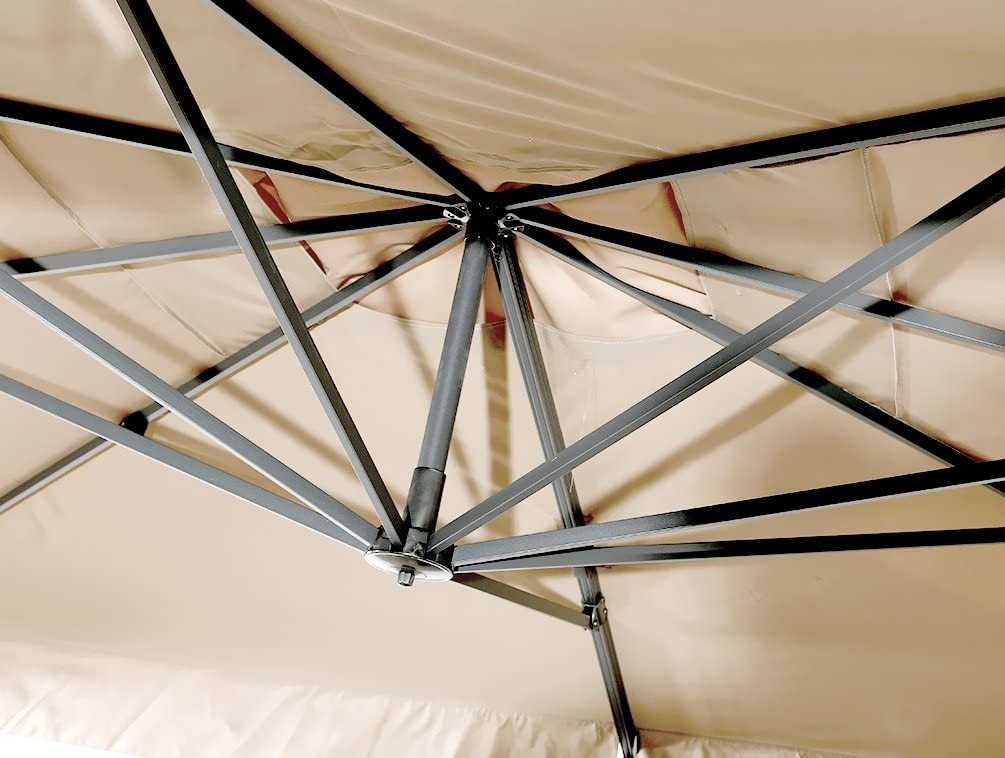 Il suo tendone rettangolare da tre metri per quattro metri ti consentirà di poterlo utilizzare sia per proteggere un tavolo e così poter pranzare all'esterno al riparo dalla calura, sia di potervi collocare poltrone e sedie a sdraio per potersi rilassare al fresco. Il braccio decentrato consente di recuperare spazio e di poter occupare tutta la sua zona d'ombra senza alcun intralcio, ottenendo così una superficie totalmente sfruttabile.