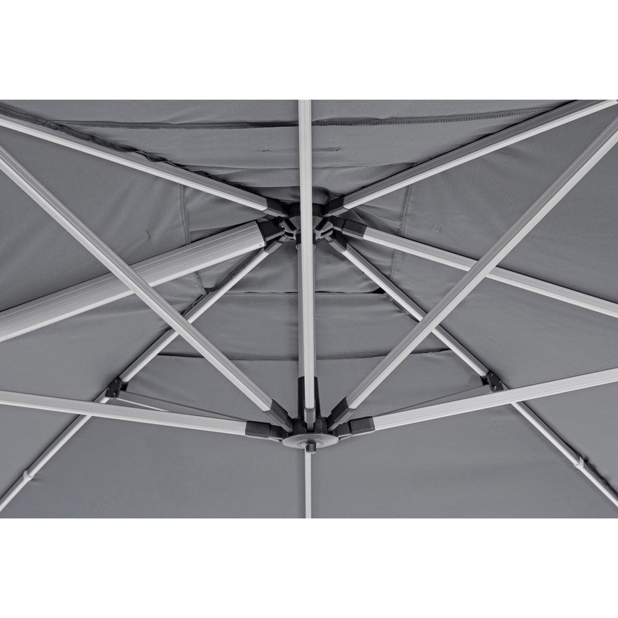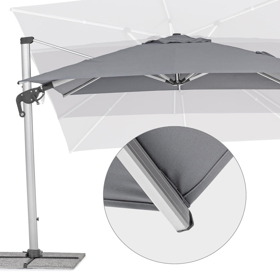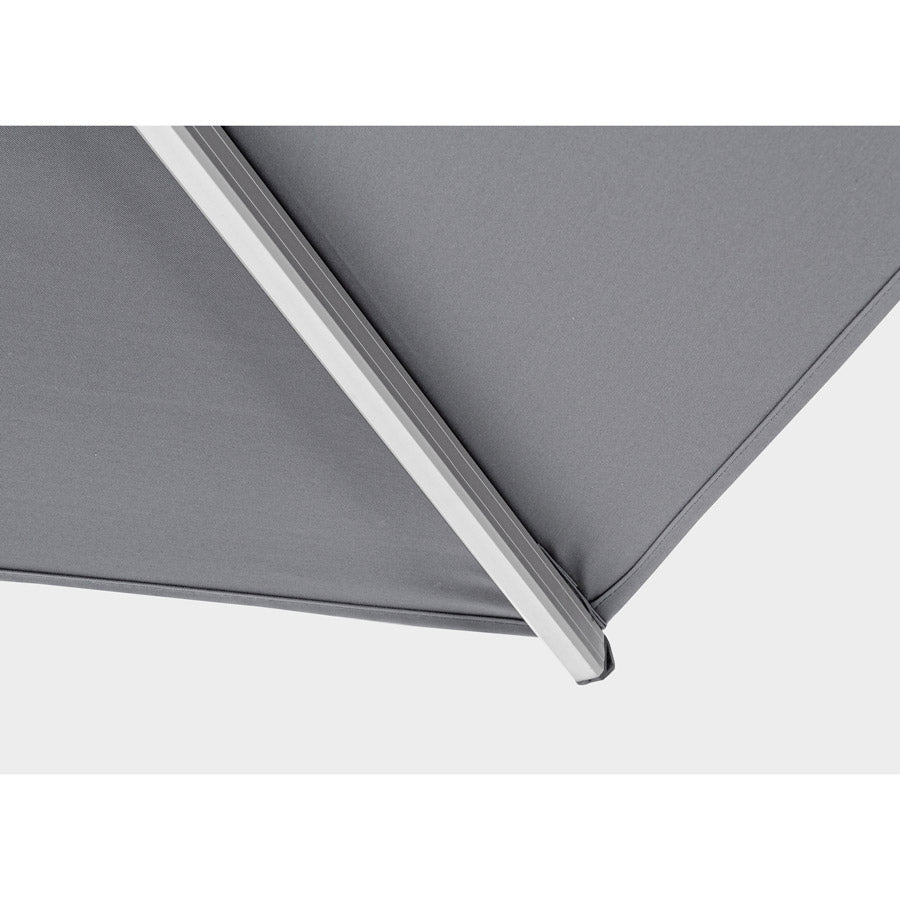 Ombrellone Roma 3x4 palo 93x57 Grigio presenta una struttura in alluminio interamente verniciata a polvere epossidica. Questa finitura la rende resistente alla ruggine ed alle deformazioni dovute agli agenti atmosferici.