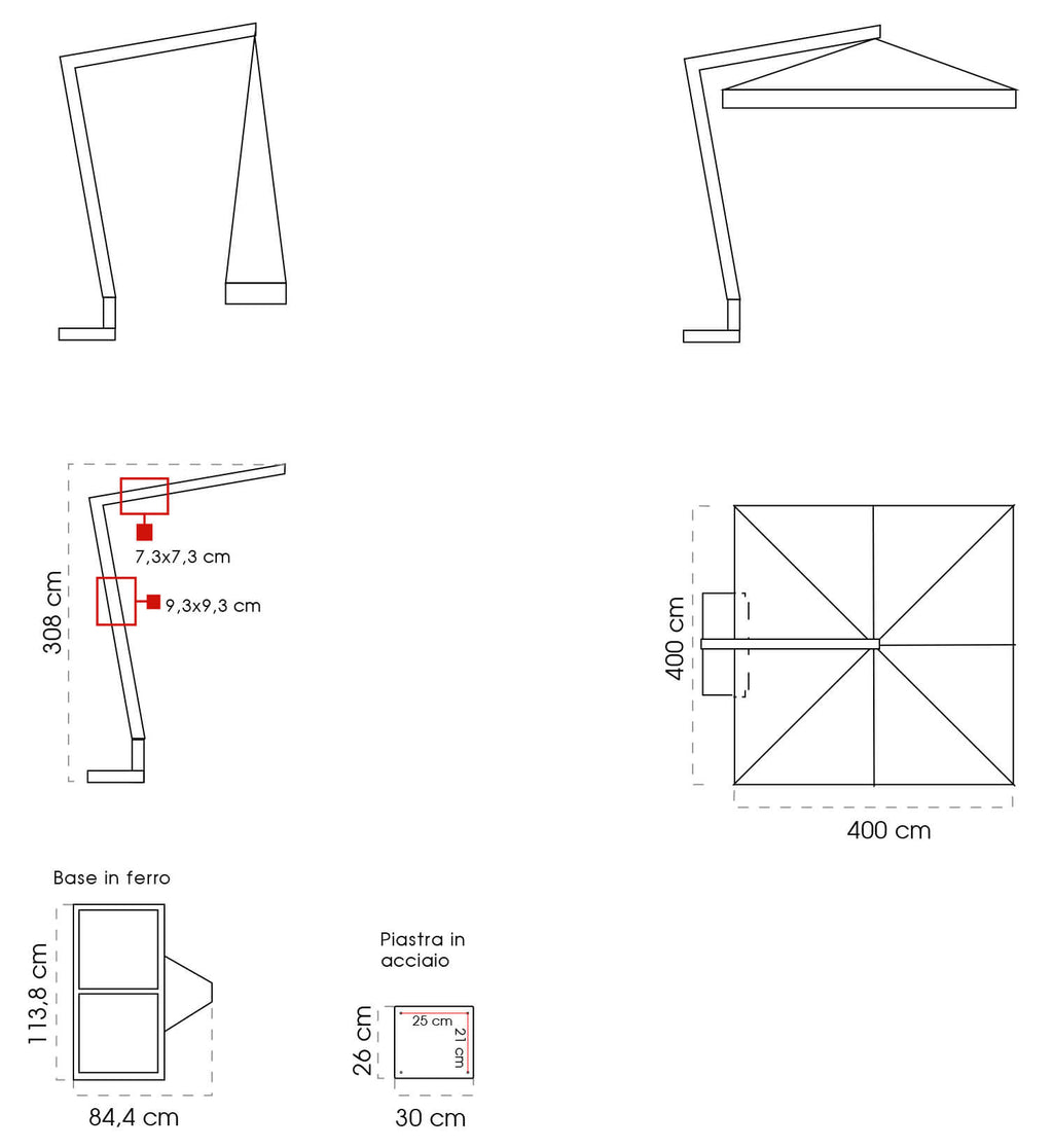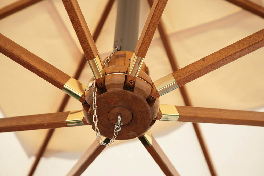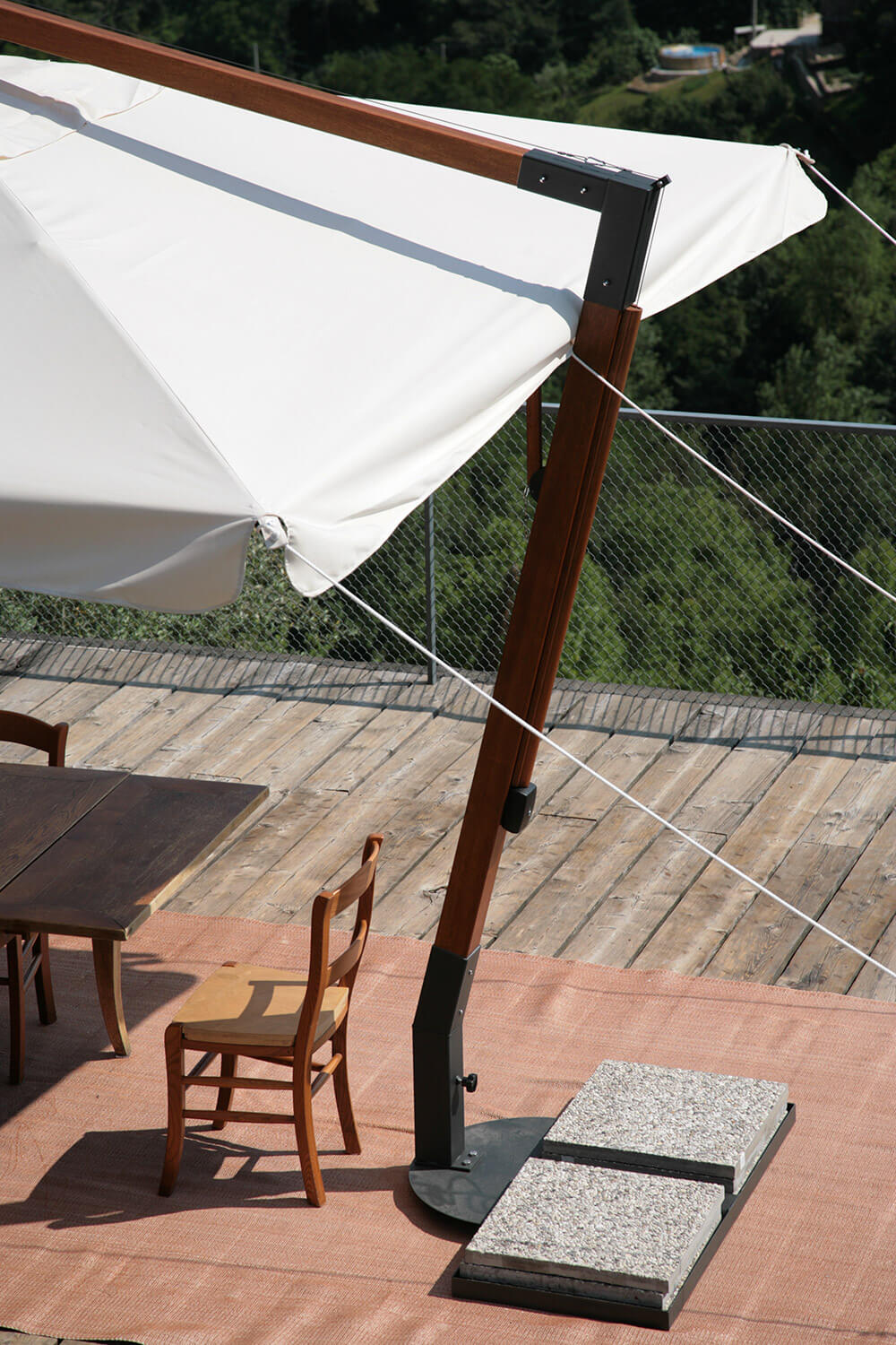 - Ombrellone San Francisco a palo laterale in legno con telo quadrato 4x4 metri con Pendente