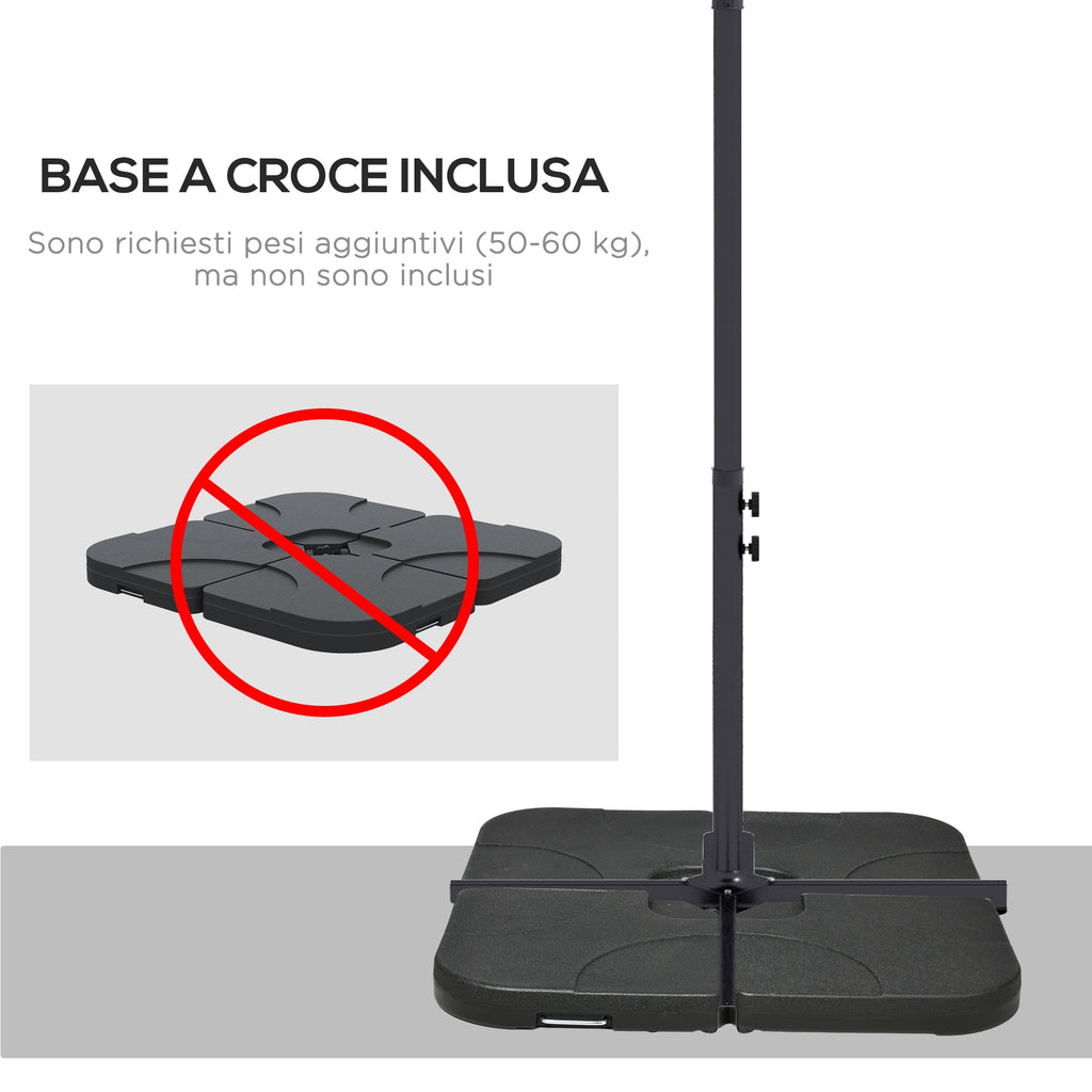 - DIMENSIONI: Dimensioni generali: 294L x 193P x 250A cm. Montaggio richiesto. NOTA: È necessario abbinare pesi da 50-60 kg (non inclusi) per assicurare la struttura a terra. Non utilizzare l'ombrellone da giardino in caso di condizioni atmosferiche estreme (vento forte, pioggia intensa, neve)