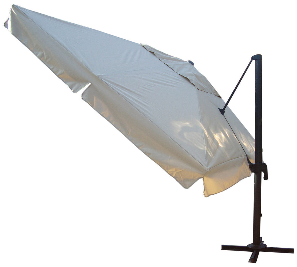 Ombrellone a palo laterale con struttura in Alluminio a verniciatura opaca dotato di rotazione a 360° e copertura in poliestere impermeabilizzante.