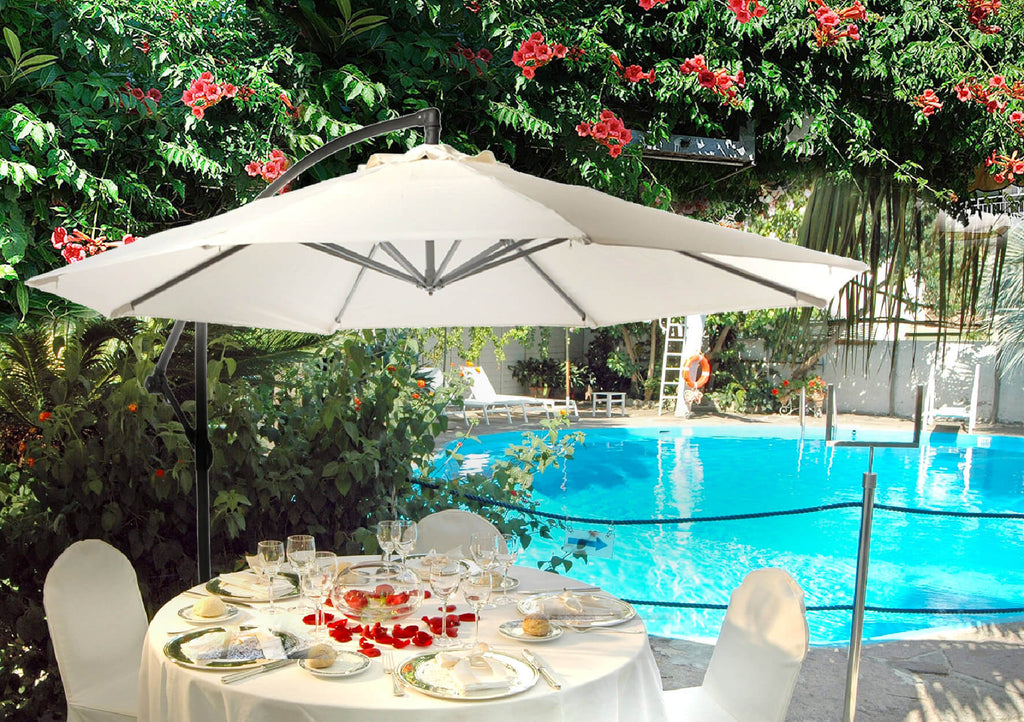 arrivata l'estate e gli spazi all'aperto della nostra casa fioriscono proprio come la bella stagione. Sfruttarli totalmente per momenti di relax e convivialità diventa un piacere irrinunciabile. Gli ombrelloni da giardino creano gradevoli e ampi spazi all'ombra dove è possibile allestire un salottino, posizionare un tavolo per la cena o creare uno spazio ricreativo a bordo piscina. La resistente copertura in poliestere disponibile in differenti colore e misure completa la robusta struttura perfetta per un utilizzo all'esterno.
