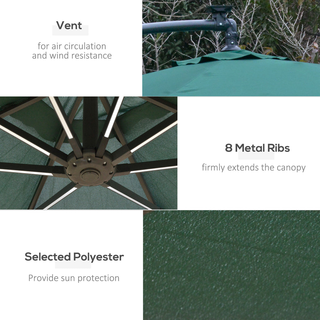 Ombrellone da Giardino Decentrato Ø2,95m con Led a Energia Solare Verde