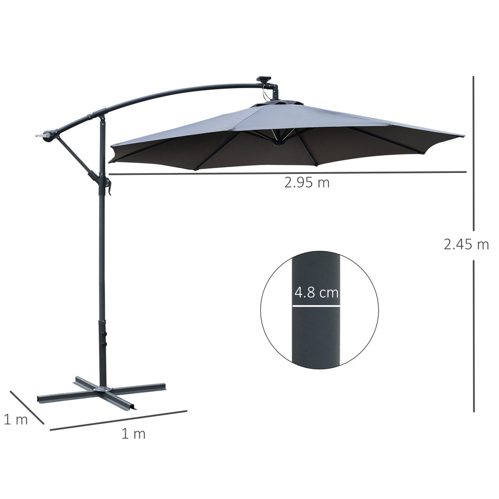 Ombrellone da Giardino Decentrato Ø2,95m in Acciaio Grigio e Nero