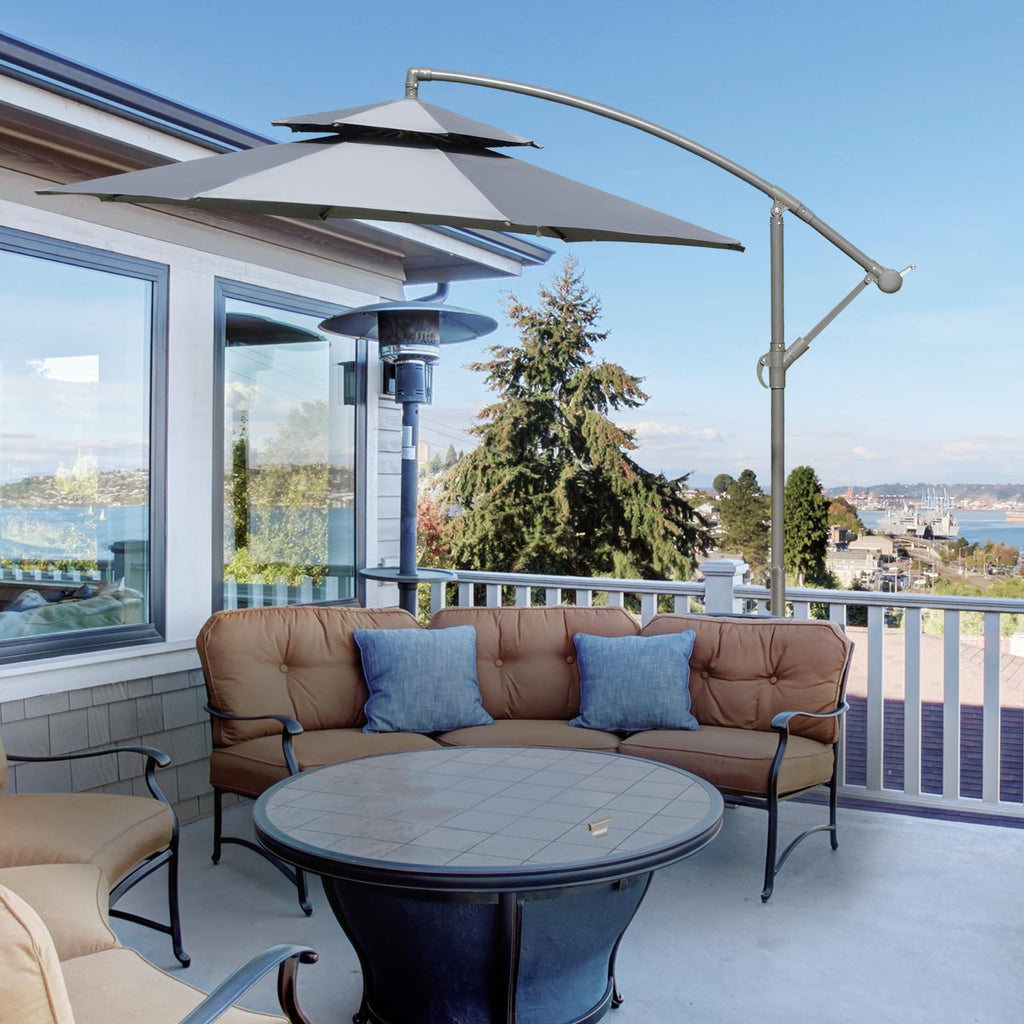 Questo elegante ombrellone a braccio è un pezzo da avere nel tuo spazio esterno. Il design moderno a sbalzo significa stare all'ombra ovunque, senza il fastidio di un palo centrale e avere rinfrescante ombra sopra grandi tavoli, divani e altro ancora. La struttura centrale è realizzata in acciaio, quindi è resistente e robusta, e si collega al tettuccio con 8 stecche per il supporto. L'ombrellone ti mantiene al fresco nelle calde giornate estive, creando un'atmosfera confortevole.
