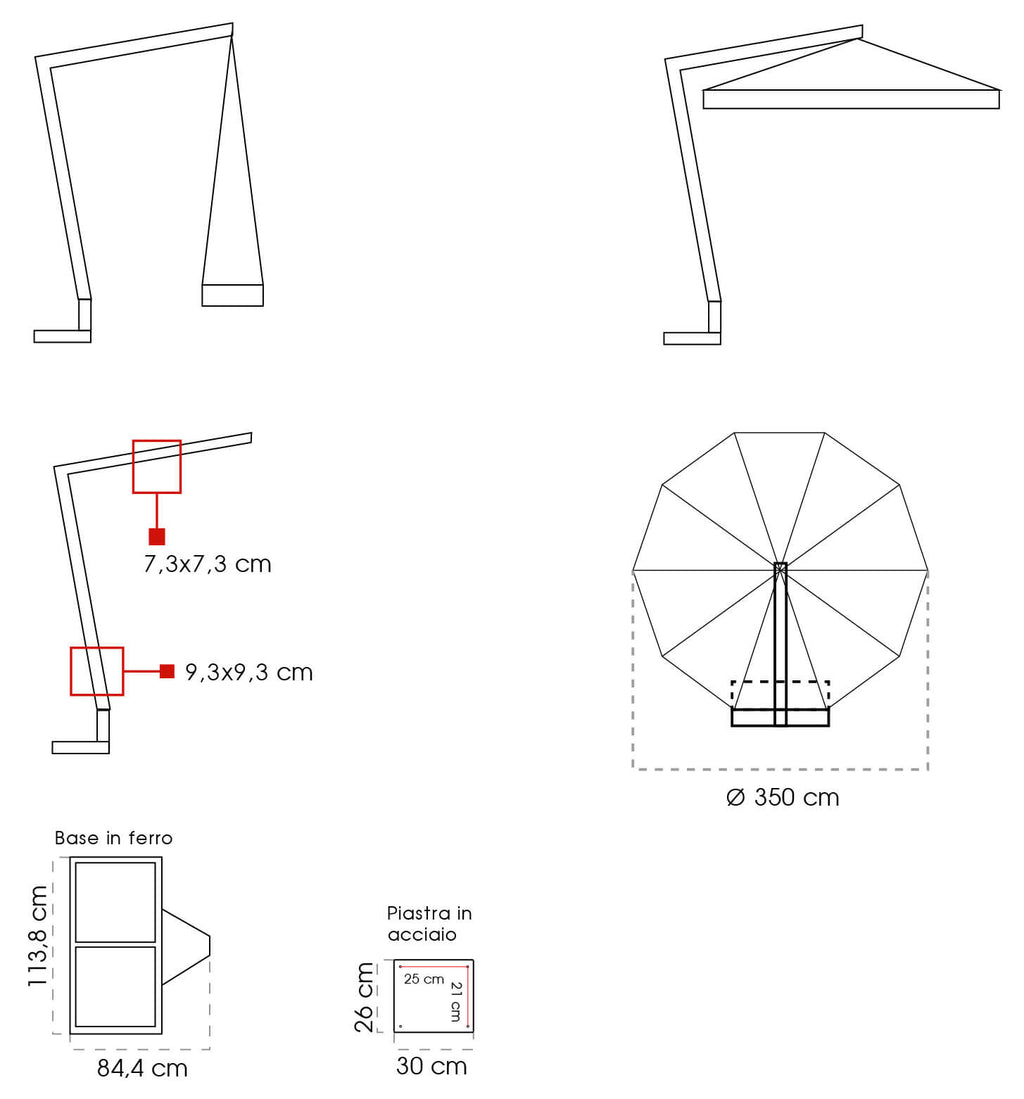 - Base in ferro zincato verniciato a polveri con alloggio per marmette 50x50 cm (Marmette Non incluse)