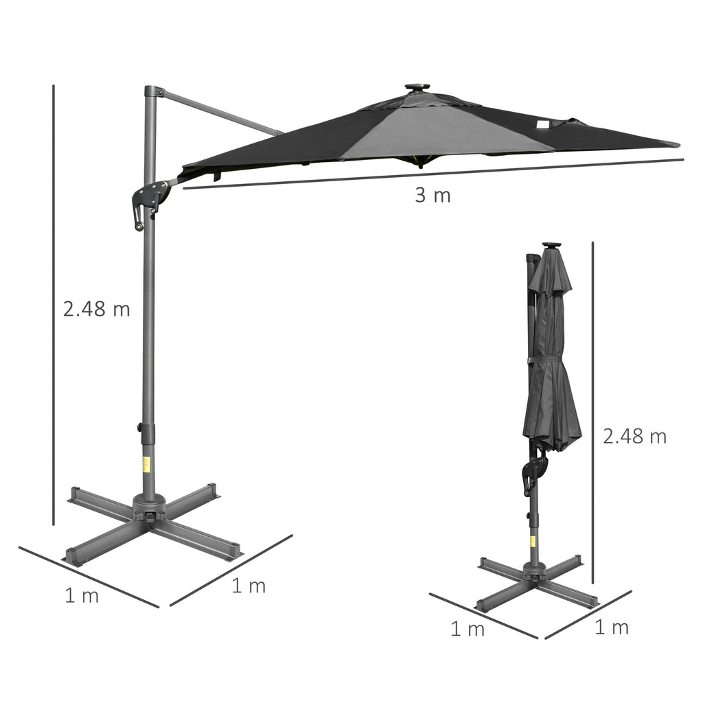 Ombrellone da Giardino Decentrato Ø3m inAlluminio e Poliestere Grigio Scuro