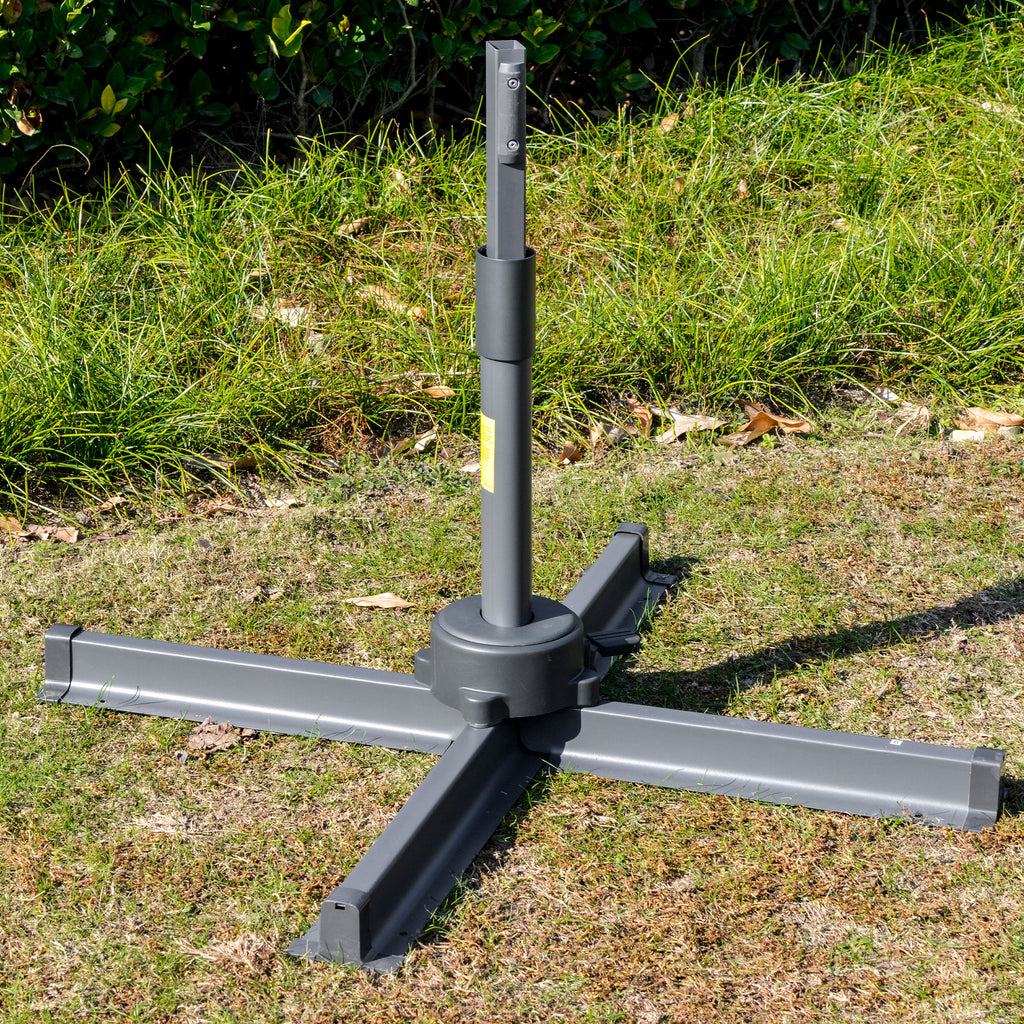 - ROTAZIONE 360°: Dotato di una base a croce (Nota: Solo la base a croce è inclusa, si consiglia di usare un peso superiore a 90-110kg ). Sulla base è presente un pedale che puoi usare per ruotare l'ombrellone da giardino fino a 360°