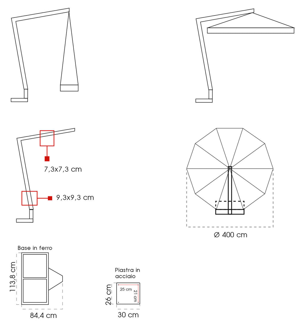Ombrellone decentrato rotondo modello LISBONA: per chi ama lo stile classico in ambienti raffinati ed eleganti.