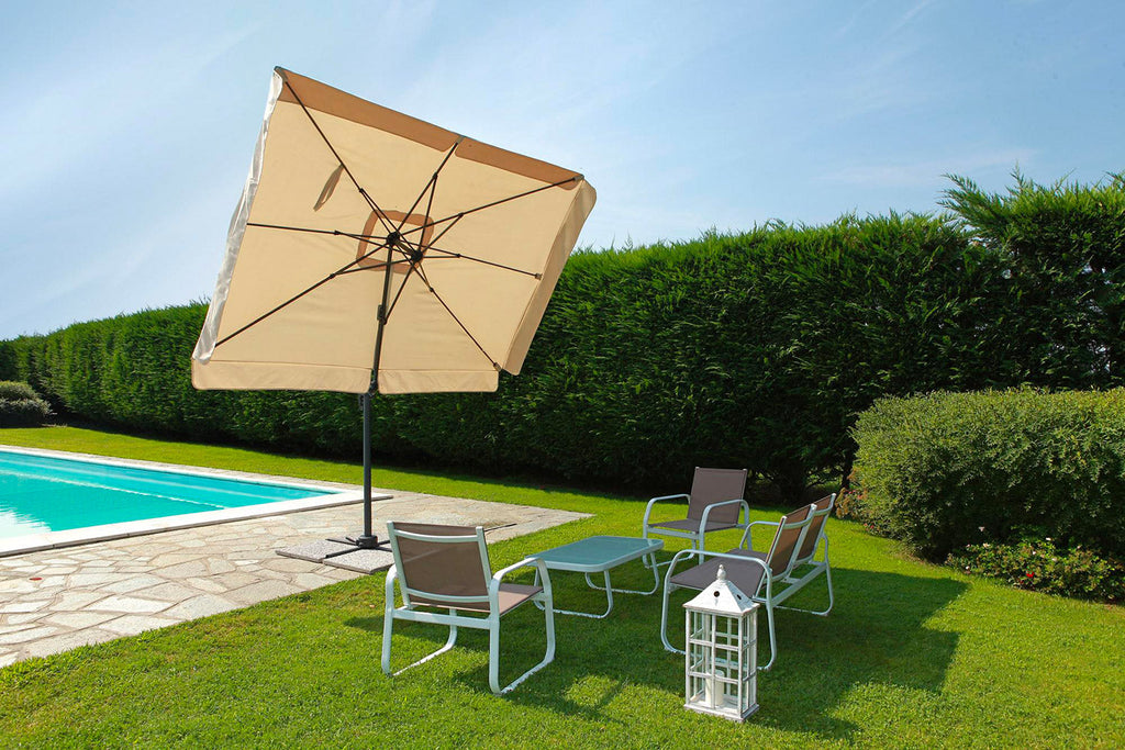 Ombrellone da Giardino Decentrato Quadrato a Sbalzo Con Apertura e Chiusura a Manovella 3x4m Michigan Sabbia Senza Base