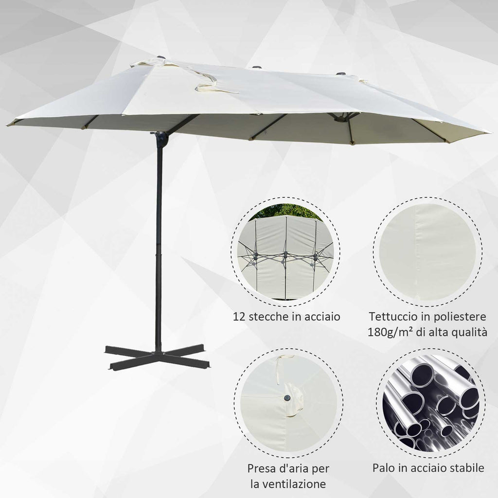 Ombrellone da Giardino Doppio 440x270x250 cm in Acciaio e Poliestere Crema