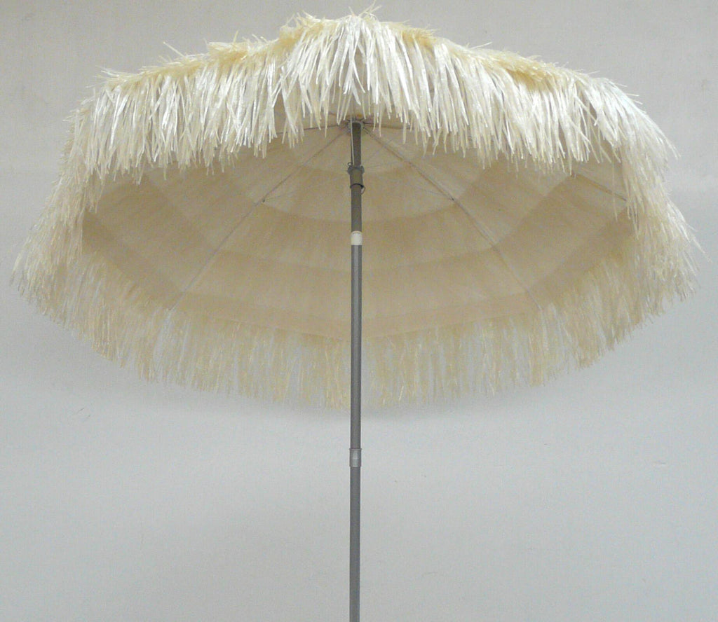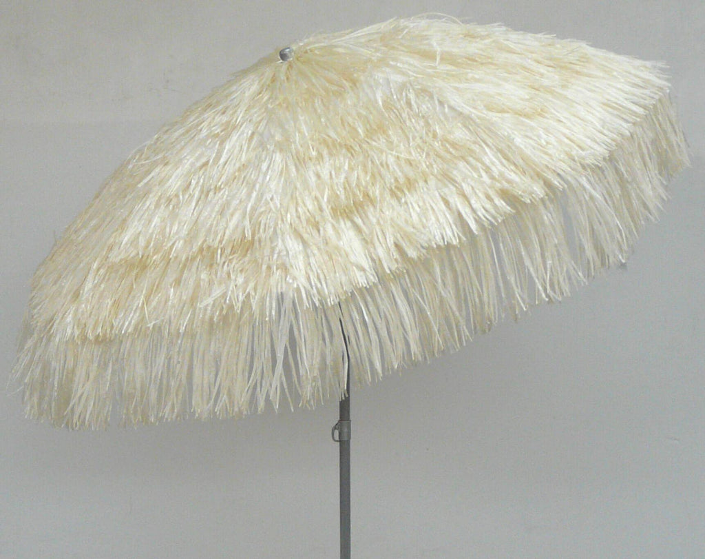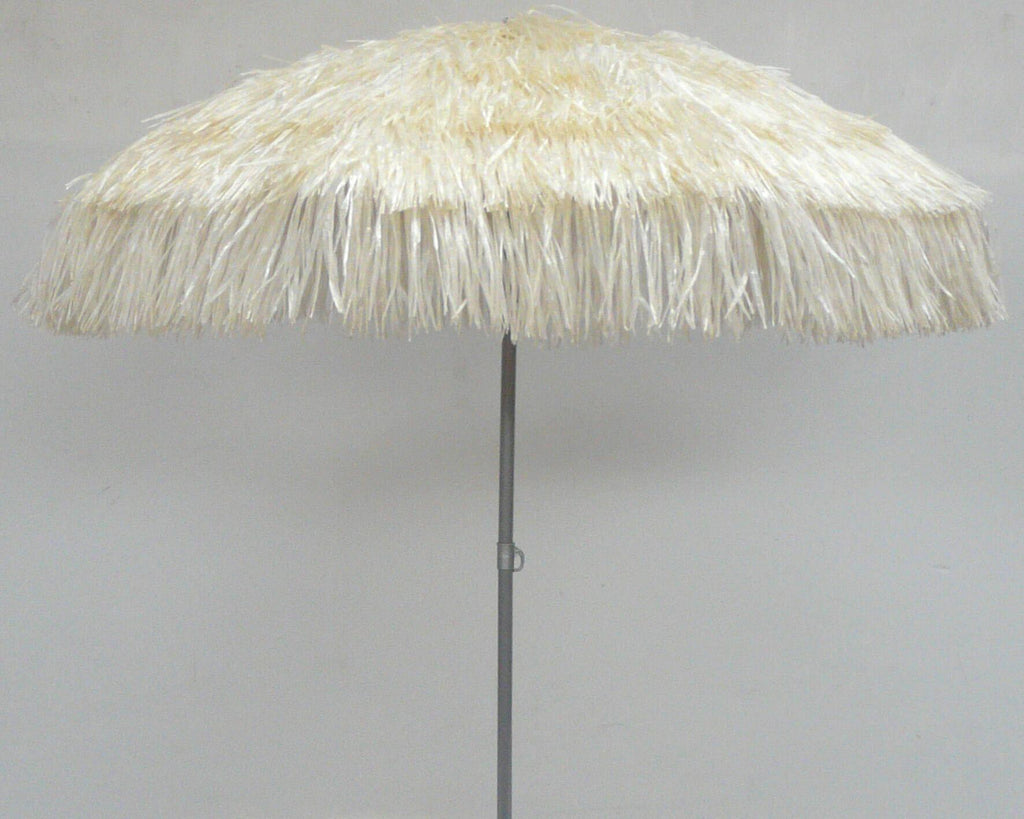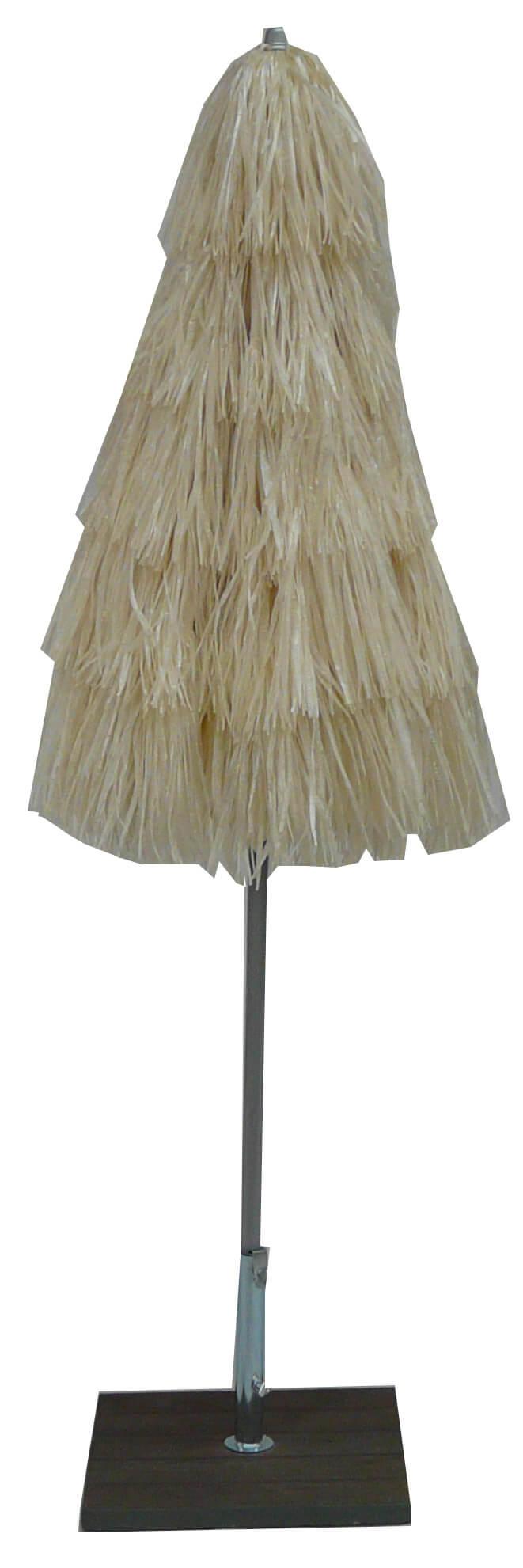 Ombrellone Kenia ricoperto in rafia tinta unita. Ideale per un arredamento tropicale del vostro ambiente esterno.
