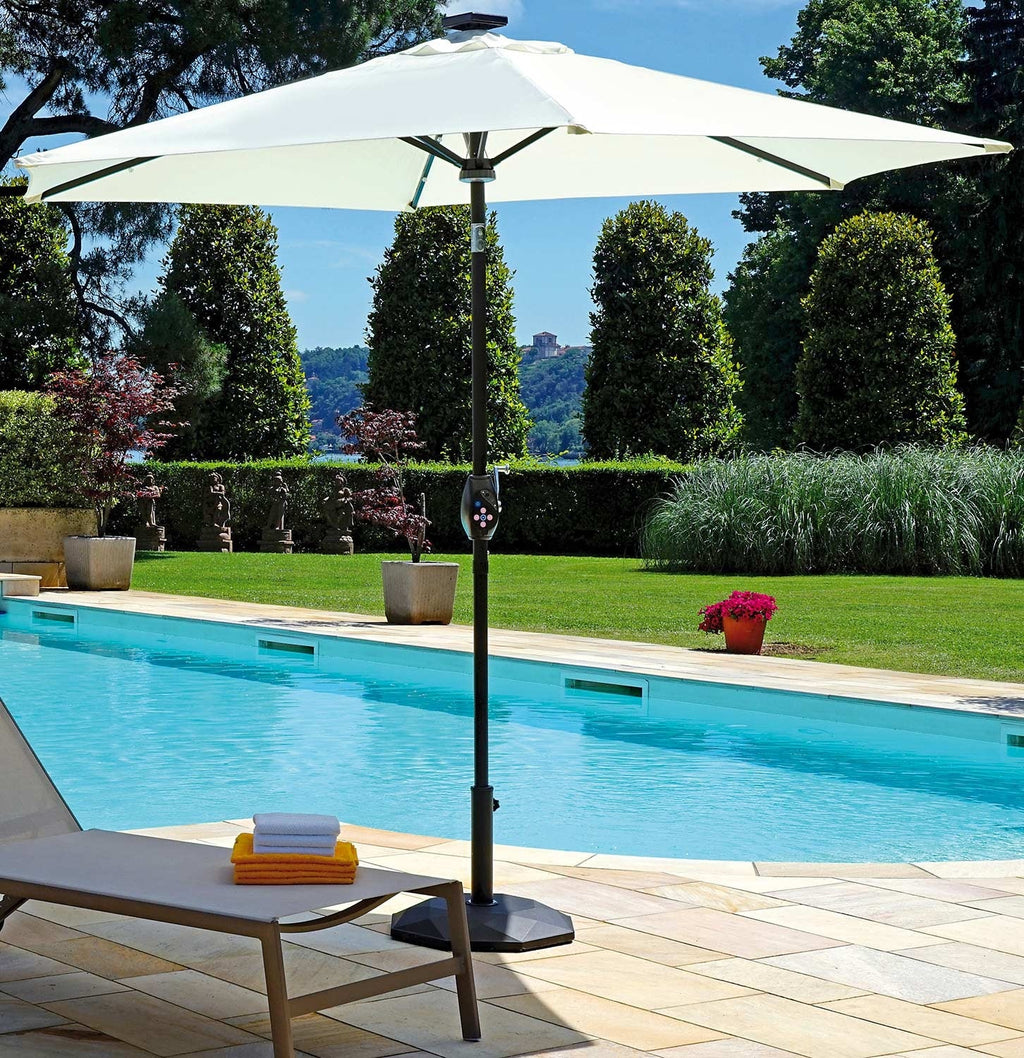 Ombrellone da Giardino in Alluminio Ø2,70m con Luci e Bluetooth Vorghini Trendy Antracite e Ecrù