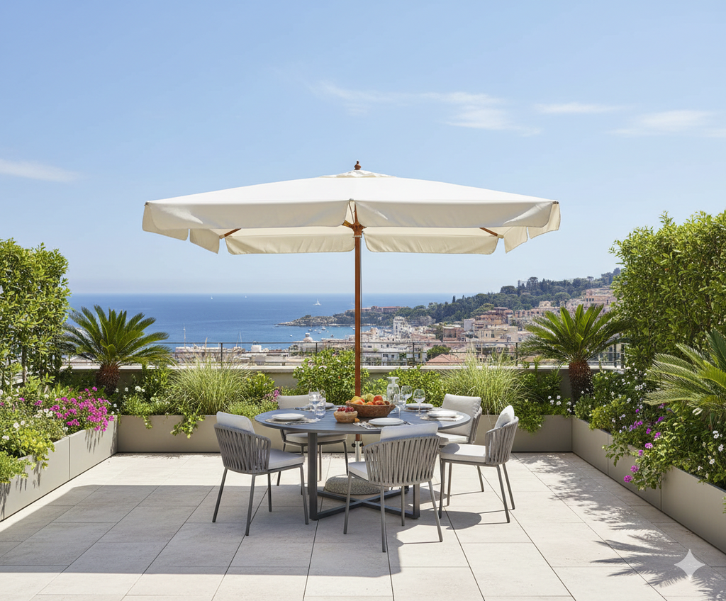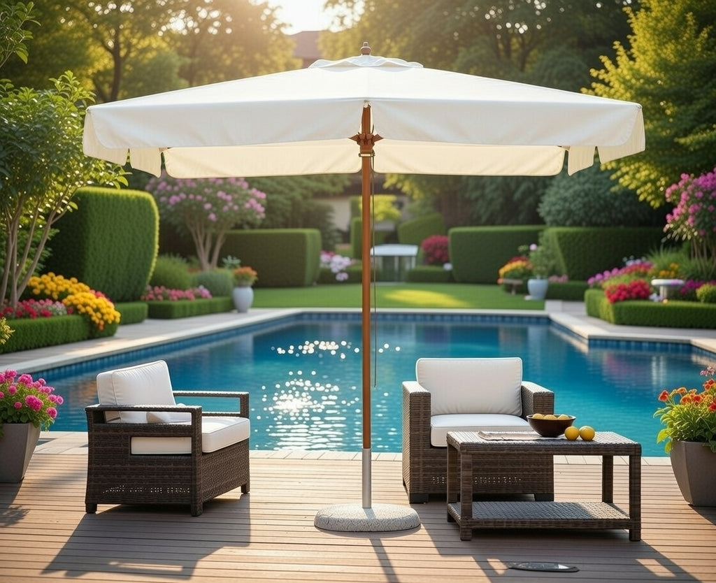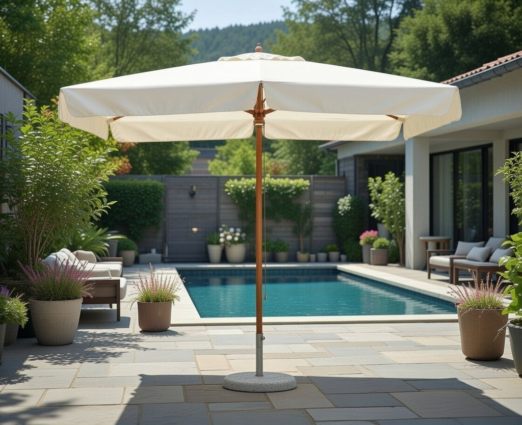 Ombrellone da Giardino 3x3 m Palo Ø48 mm in Legno Vorghini De Lux Ecrù