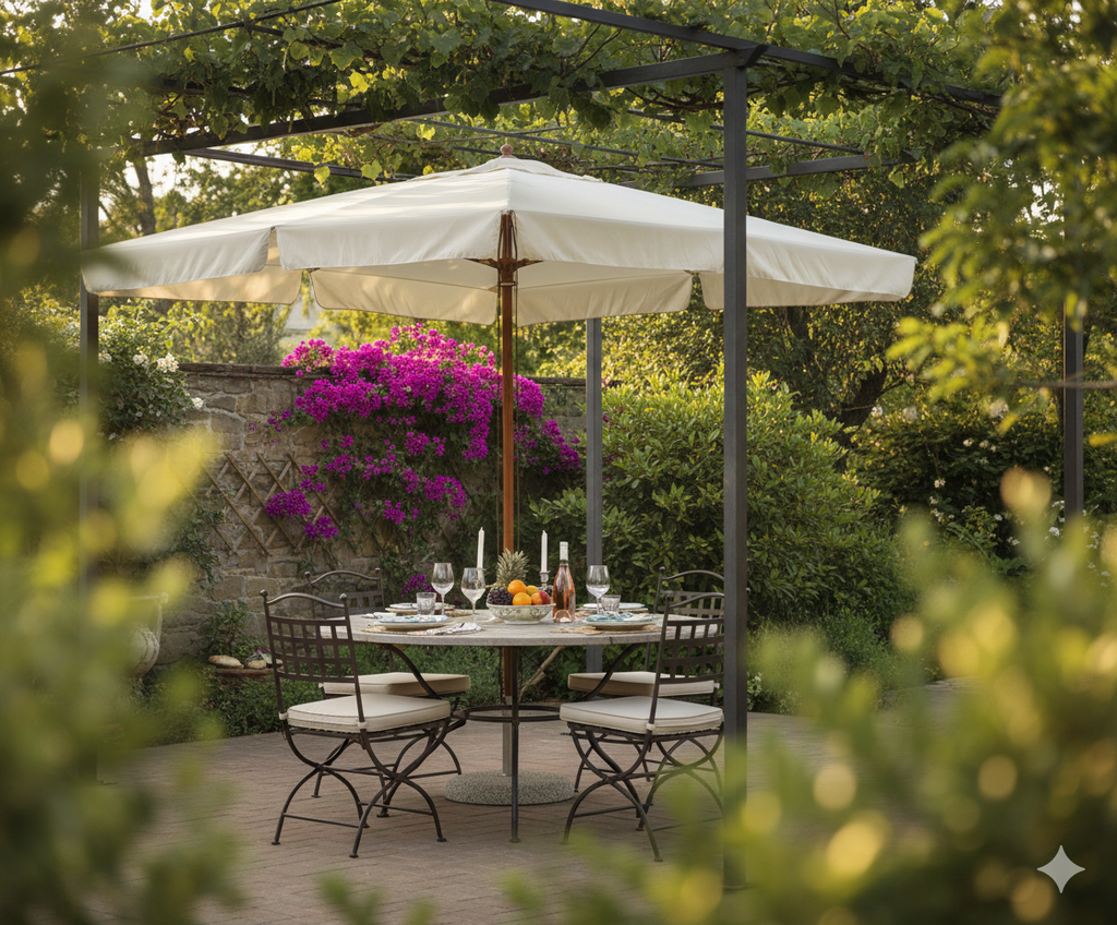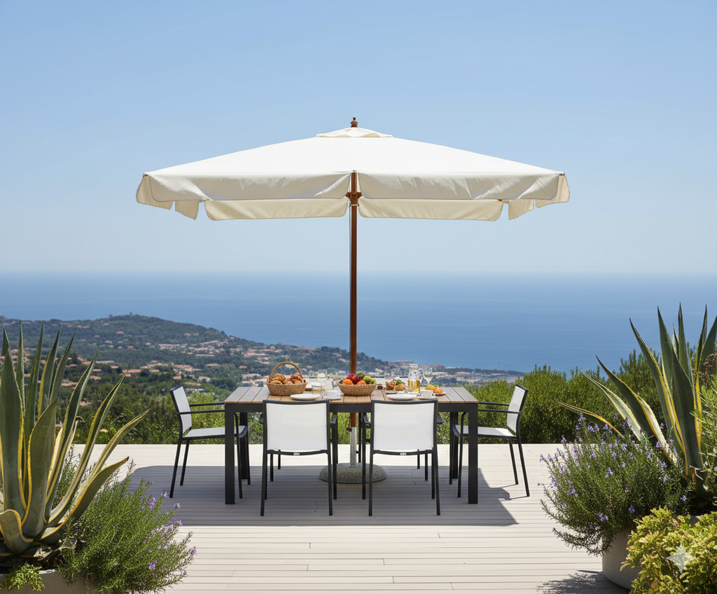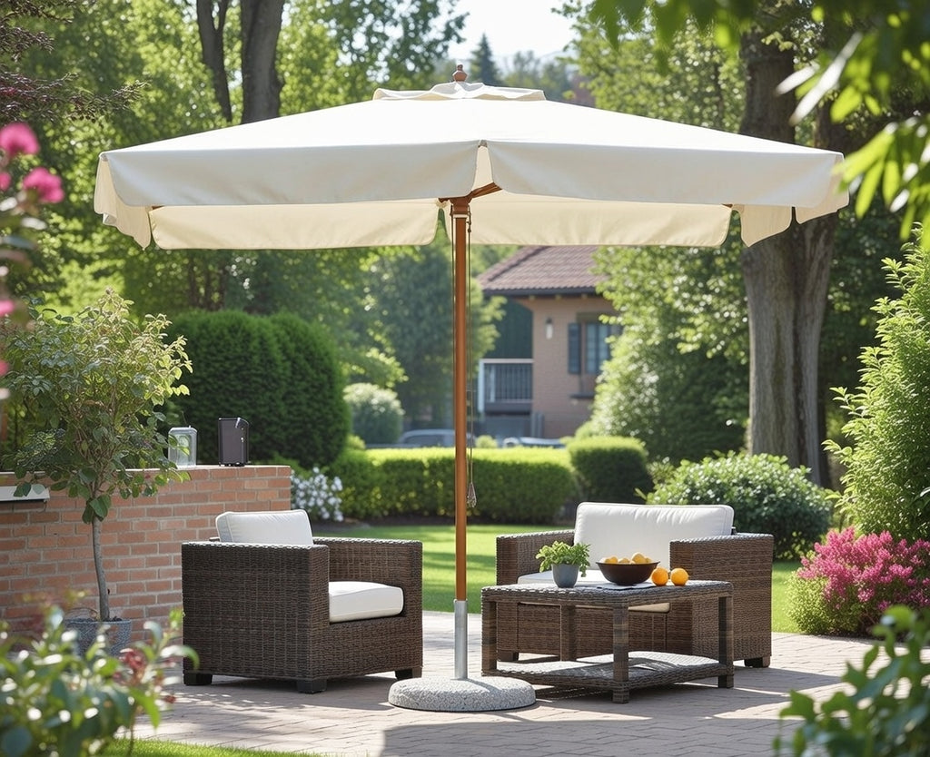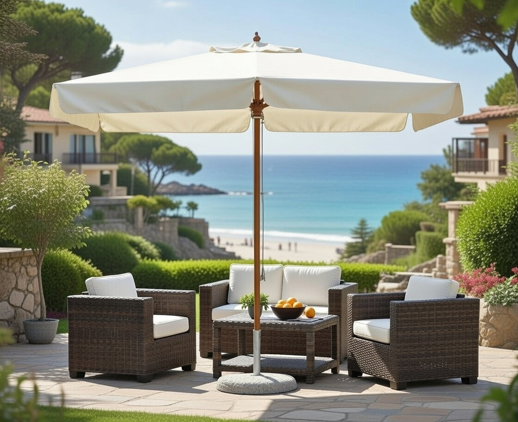 Ombrellone da Giardino in Legno Quadrato 3X3m Vorghini De Lux Ecrù