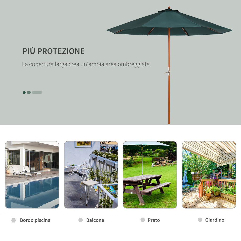 Ombrellone da Giardino Ø2,7 m Palo Ø38 mm in Legno di Pioppo Verde