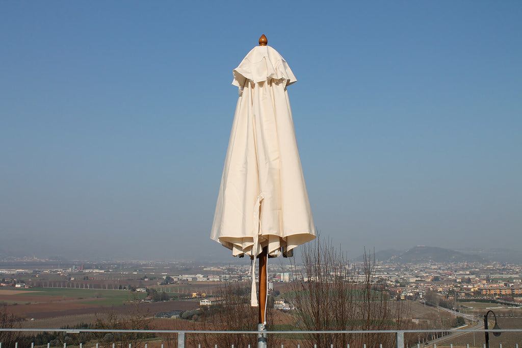 Materiali di qualità e trattamenti all'avanguardia rendono il parasole estremamente resistente all'azione aggressiva degli agenti atmosferici, in particolare allo sbiadimento provocato dai raggi UV e dalla pioggia.