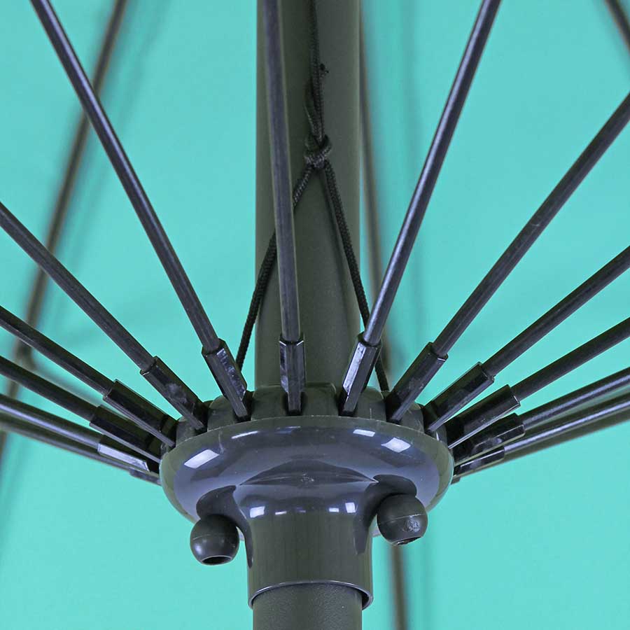 L'ombrellone da giardino Atlanta presenta una struttura in alluminio con 18 stecche in fibra di vetro e telo in poliestere 180 gr con camino antivento.