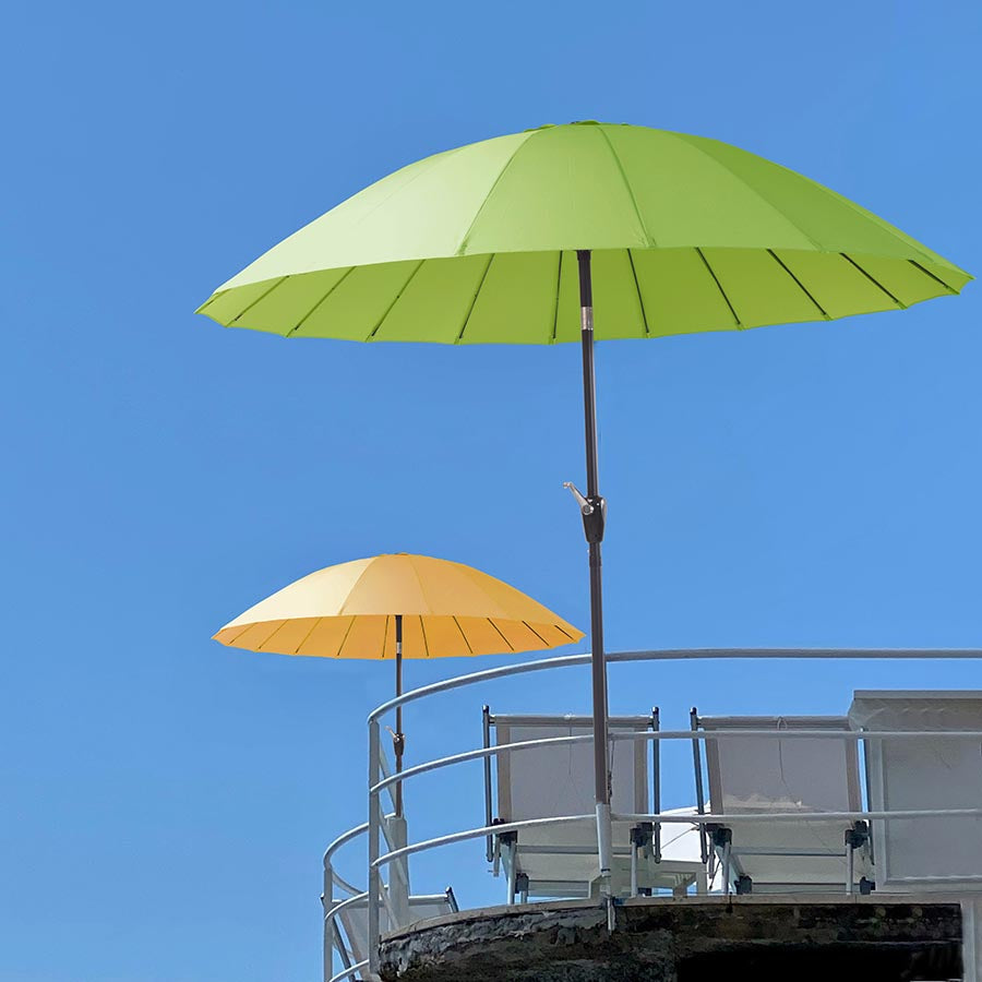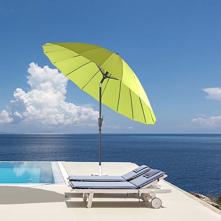 Scegli la comodità del sistema di apertura/chiusura tramite la manovella e la praticità di inclinare a destra o sinistra l'ombrellone tramite il pulsante posto sul palo centrale.