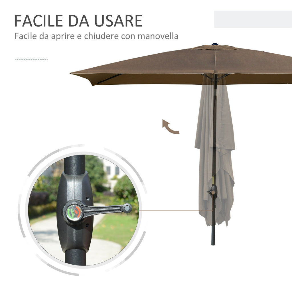 Ombrellone da Giardino Rettangolare 3x2 m con Apertura a Manovella e Inclinabile Caffè