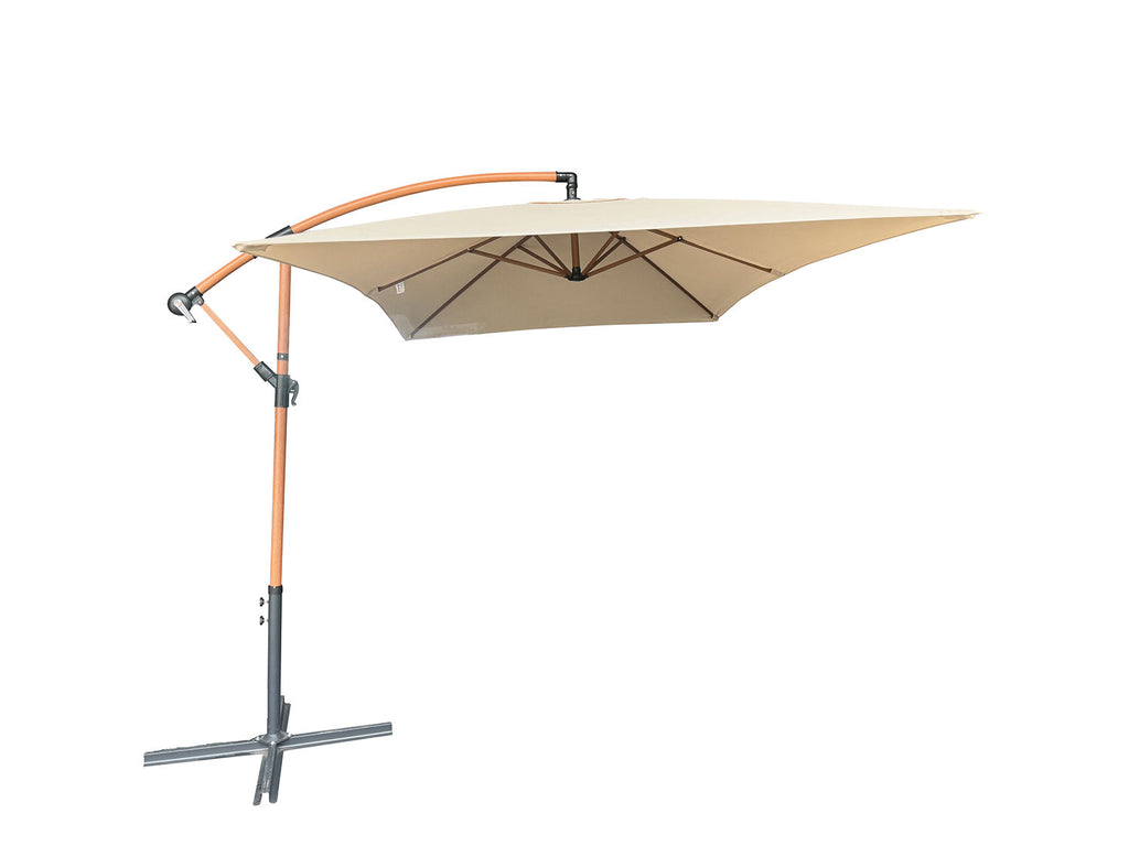 Immagina di rilassarti sotto il tuo ombrellone rettangolare a braccio in acciaio e poliestere. La sua tonalità beige e l'effetto legno del palo aggiungono un tocco di eleganza naturale al tuo spazio esterno. Il robusto palo in acciaio con diametro di 48 mm.