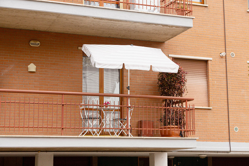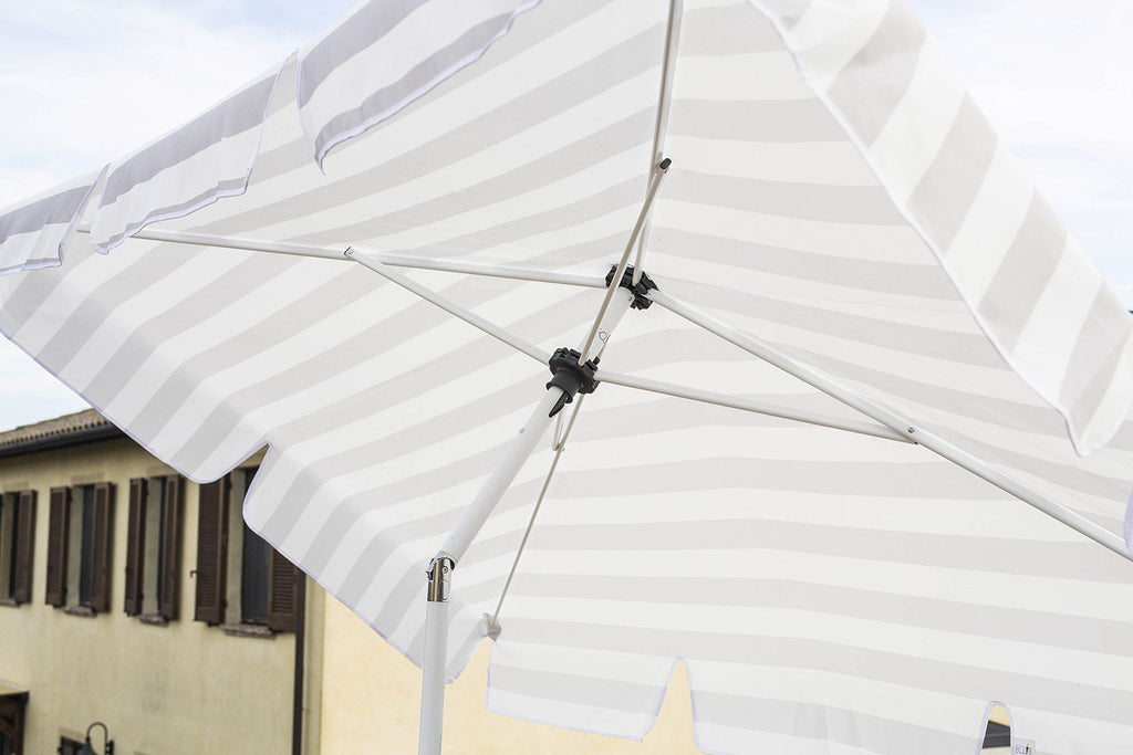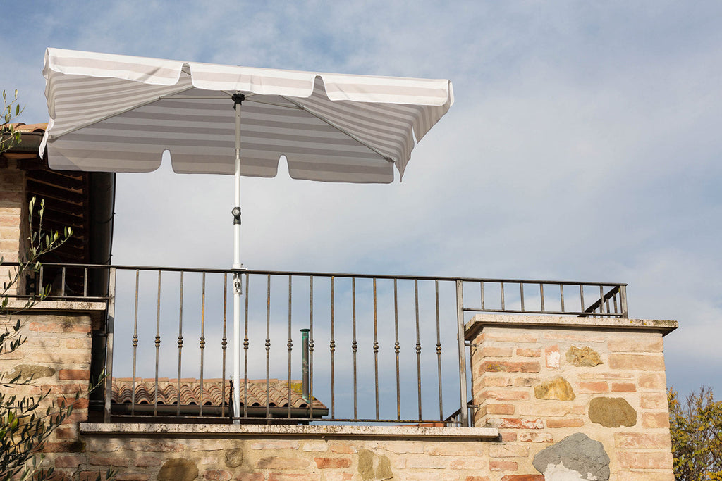 L'ombrellone rettangolare Flexo con struttura in Alluminio e base da 25 Kg si adatta a molteplici usi e situazioni domestiche. Si può regolare in altezza, inclinare su entrambi i lati lunghi e ancorare alla ringhiera. Inoltre è dotato di un sistama di sicurezza per aggancio a ringhiera o muro che vi consentirà di poter essere al sicuro da folate di vento per installazioni anche su piani alti senza correre rischi di eventuali danni. Potrà essere utilizzato anche su balconi e giardini grazie a una base che è in plastica riciclata che può essere riempita con acqua o sabbia, molto facile da riporre d'inverno semplicemente svuotandola.