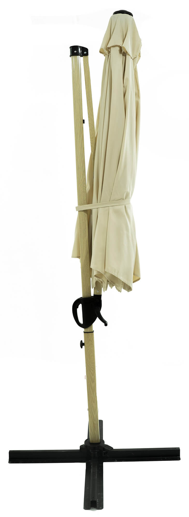 Dal design minimal ed elegante questo ombrellone con struttura in alluminio verniciata a polvere effetto legno è la soluzione ideale per chi desidera completare l'arredo giardino col confort di un ombrellone di qualità. Presenta un palo laterale con impugnatura per proiettarlo in 5 posizioni e la pedalina per ruotarlo a 360° in modo da scegliere quella che si desidera e necessita. Telo ottagonale color sabbia in poliestere 180 g/mq. Base laterale completamente in acciaio durevole nel tempo e resistente agli agenti atmosferici. Ideale per tenersi al riparo dal caldo estivo creando piacevoli zone d'ombra e per vivere nel più tranquillo relax le proprie giornate. L'ombrellone con palo decentrato è la soluzione più adeguata per lo sfruttare al massimo lo spazio disponibile questo complemento, infatti, grazie alla sua versatilità e alla diversità di modelli si adatta perfettamente ad ogni esigenza di spazio e utilizzo.