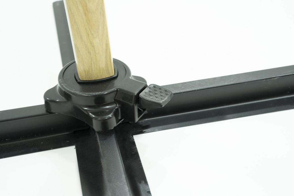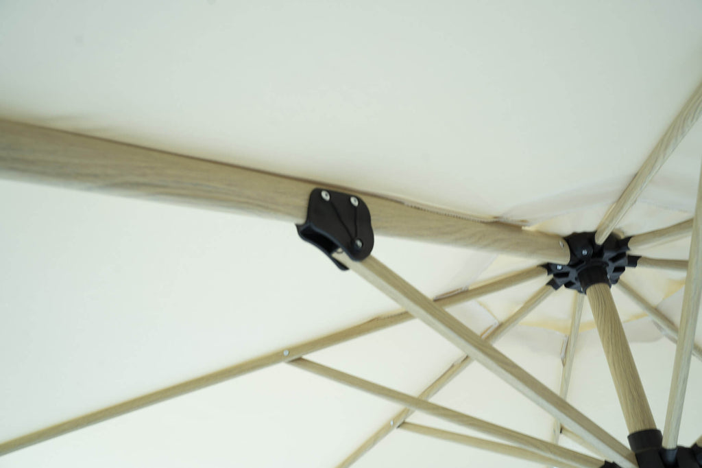 - Struttura in alluminio con palo decentrato 5 x 3,5 cm e 8 aste