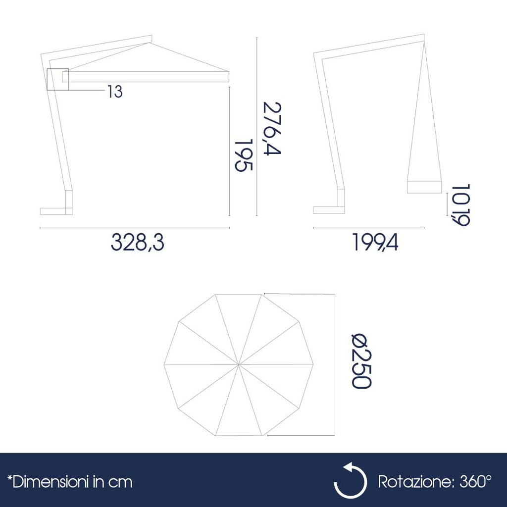 L'ombrellone decentrato da giardino con braccio in legno offre un'ampia copertura flessibile senza compromettere lo spazio sottostante. Il design moderno, il braccio in legno e la struttura decentrata lo rendono un elemento estetico e pratico per il tuo giardino o terrazzo, offrendo riparo dal sole con stile.
